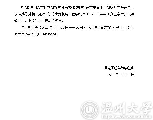 关于追新番 2018-2019学年研究生“学术新锐奖”候选人评选结果公示