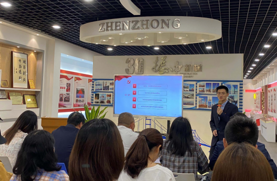 交流会上,振中机械专职副书记何守伟为师生讲授专题党课,从温州及瑞安的党建概况、非公企业党建的必要性、现非公企业党建目前遇到的问题以及对非公党建实质作用发挥的思考等四方面和大家进行分享交流。会上大家欣赏了鼓词版的“砥砺奋进,勇立潮头”之“瑞安非公党建”的非遗文化视频,通过接地气的瑞安话向听众传达“温州敢为人先”的首创精神,还观影了中国首部非公党建题材影片《红色动力》片花,充分展示了温州民营企业抓党建、优服务、促发展的生动实践。至此,同学们对非公企业成立党支部的意义有了更为深刻的了解,也对瑞安这个地方有了更多的认识。