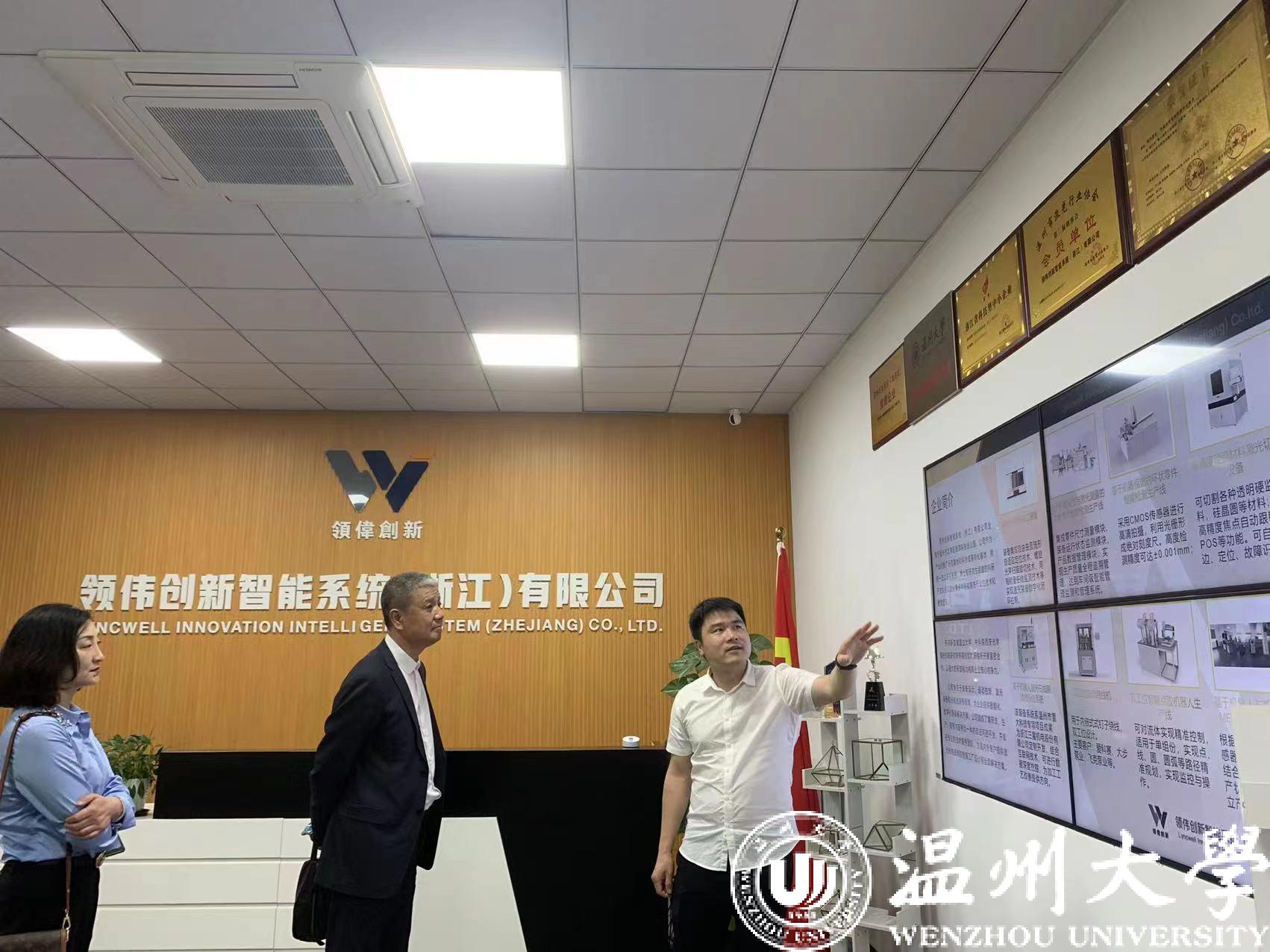 我校16级校友、伟创新智能系统(浙江)有限公司李小刚董事长对来访的母校领导表示热烈欢迎,李小刚董事长详细介绍了公司的基本运营情况、团队建设、科研情况等。