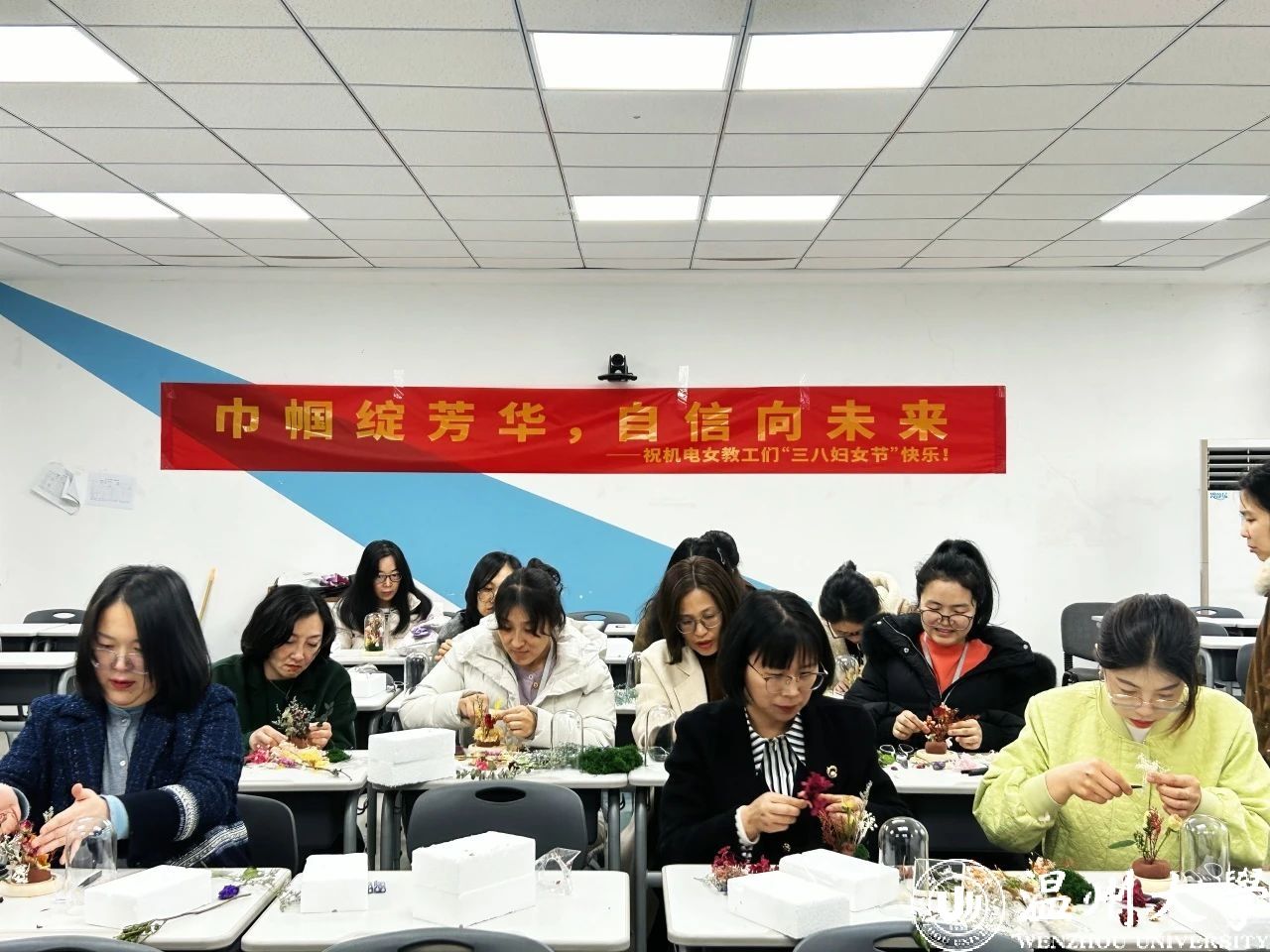 为庆祝第115个国际劳动妇女节,营造温馨和谐的节日氛围,3月7日下午,追新番 妇联与工会在6B306教室联合举办了一场主题为“巾帼绽芳华,自信向未来”的“三八”妇女节特别活动,向全院女教职工致以节日的祝福和诚挚的问候。活动旨在丰富女教职工的文化生活,展现她们的智慧与风采,同时也为她们提供了一个放松身心、交流互动的平台。