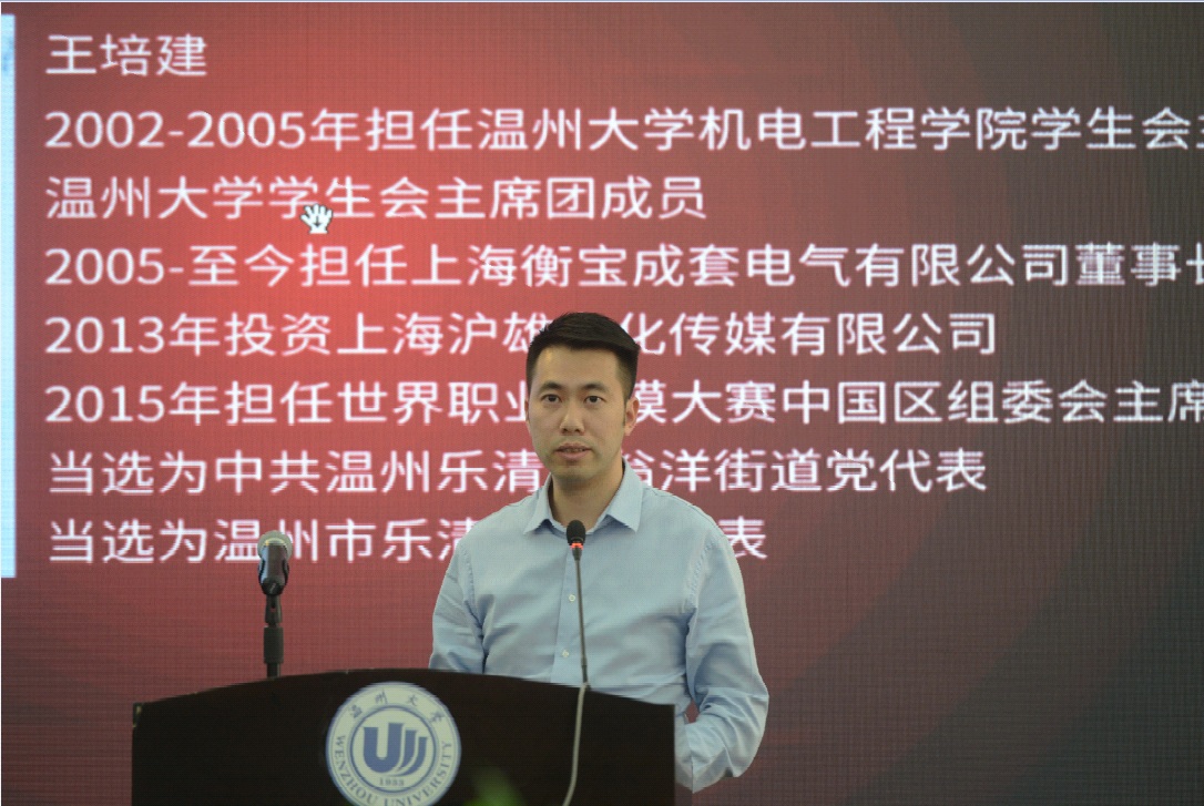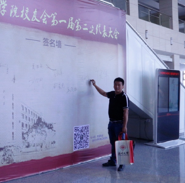 校友代表王培建发言,他说“对于母校和学院,始终怀着难以割舍的感情,他的初恋也就是他现在的妻子就是在温大相遇、相知、相恋的。尽管毕业十多年了,但对母校的感念之意、对学院的感恩之心、对老师的感激之情,历久弥坚。”