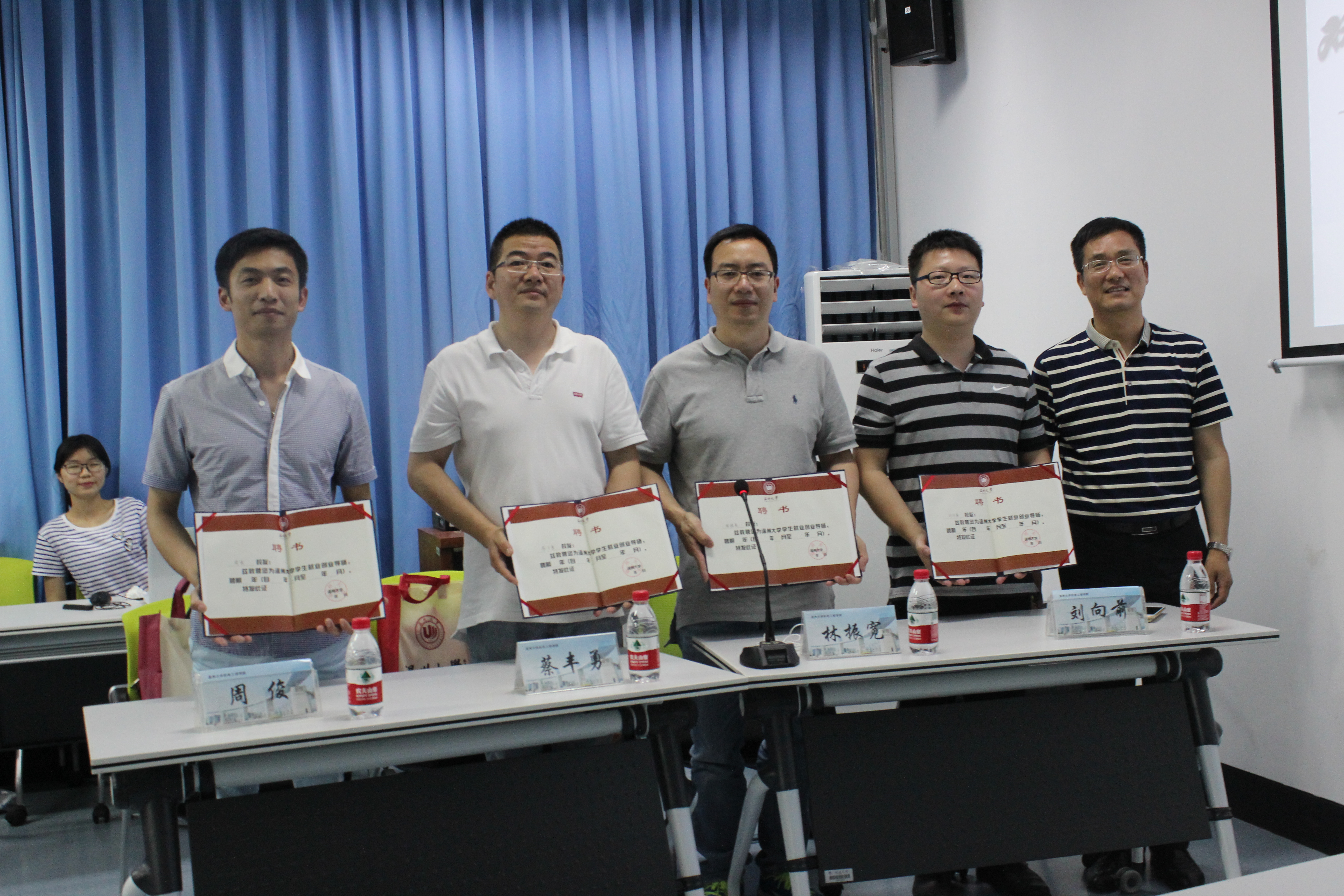 首先周荣书记代表学院对参会的校友表示衷心感谢,既感谢他们积极参加学院校友会,为学院的发展献计献策,也感谢他们参加校友论坛,为学弟学妹们传经送宝。之后周伟国老师为四位校友颁发“双百计划”学生就业创业导师证书,并感谢校友们积极参与母校学生职业发展规划、就业创业指导等方面的工作。