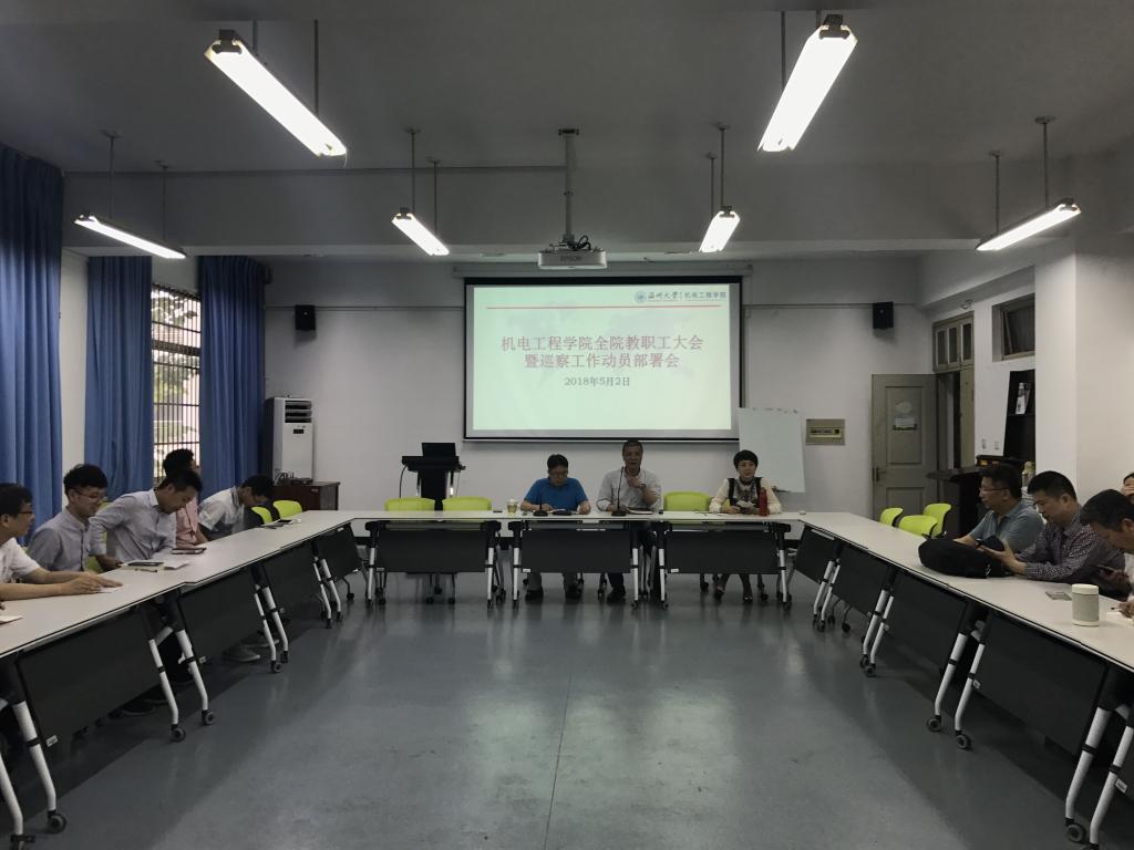 2018年5月2日下午,追新番 在6B201会议室召开全院教职工大会暨巡察工作动员部署会。学院全体教职工参加了会议,会议由学院党总支书记周荣主持。
