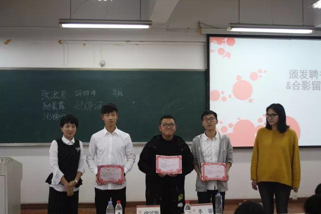 书记演讲课堂结束之后,进行了大会的另一项重要的进程,年级委员会主席团竞选,5个班级的班长团支书参与竞选,3人放弃竞选,实际共7人参与竞选,经过各班长团支书的ppt现场演示与现场演讲,许多竞选班委谈到了对年级委员会的理解和今后工作的具体目标,甚至总结了个人的优缺点和改进的方向。竞选演讲结束之后,学生代表以及在场16级年级委员会成员进行了投票,书记李密也对竞选班委的演讲做了简单客观的评价。最终结果,票数前三的班委沈博唯当选主席一职,胡维峰、郑烨波二人共同担任副主席一职。最后,年级委员会竞选全体参与者进行了集体合影,追新番 2017级年级委员会竞选暨年级大会圆满结束。