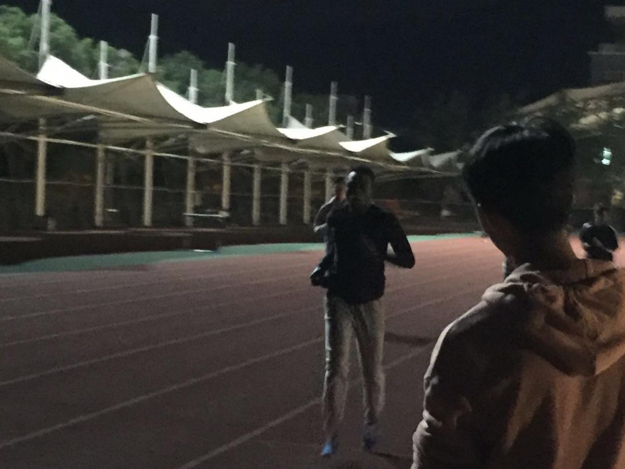 留学生们也积极的参与了本次筹备,在操场上一丝不苟的训练着(如图:追新番 文体部名誉部长Alfred正在参加800米的训练)。
