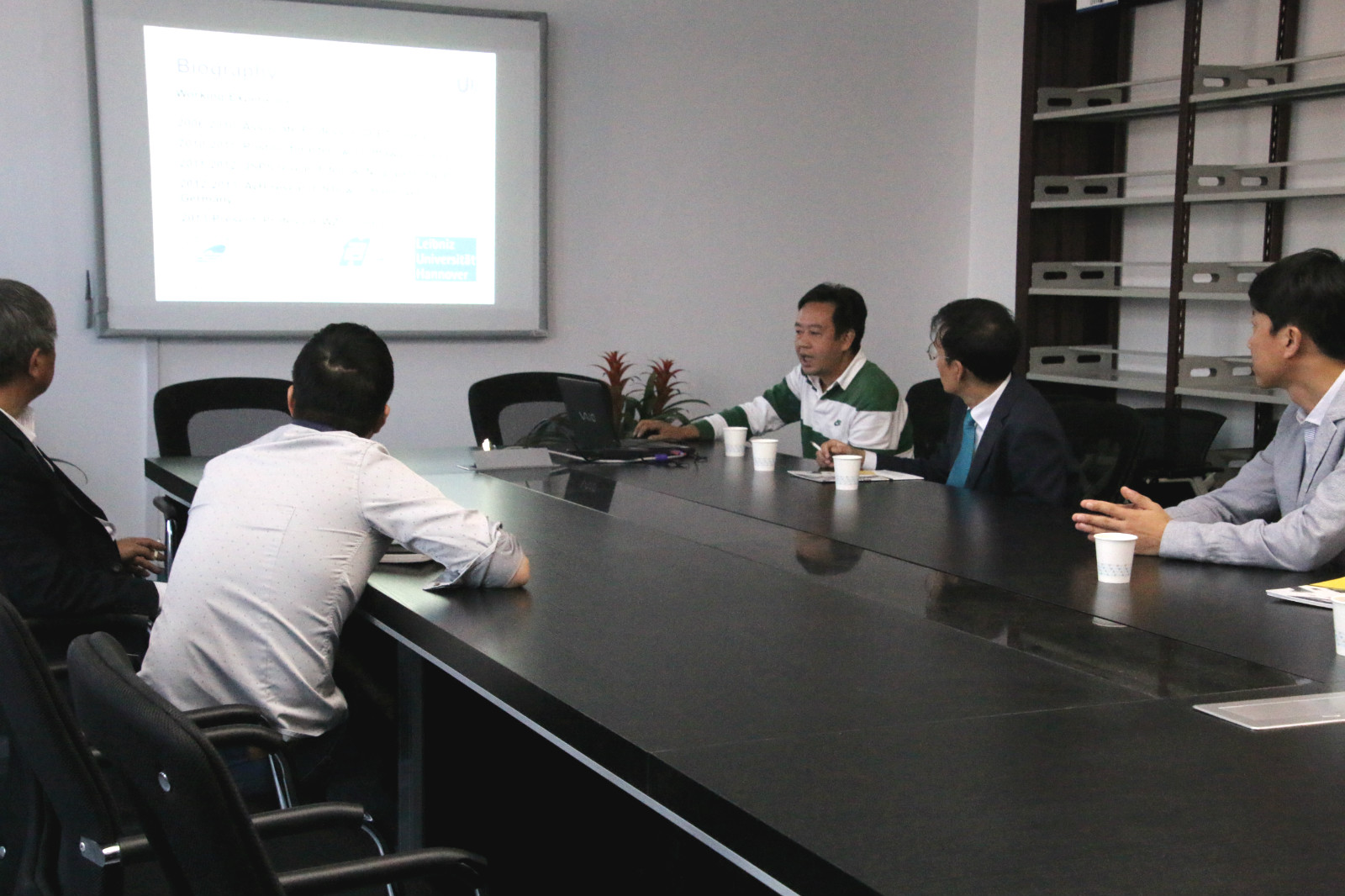 会上,追新番 对接的博士生导师代表申允德副教授对Gyu hae Park教授的到来表示热烈欢迎,并向其介绍了学院的发展情况。随后,学院学科带头人向家伟教授也向韩国教授介绍了自己的科研团队与成果,双方商谈合作契机。Gyu hae Park教授对追新番 的发展与取得的各项成果表示赞许,希望双方能开展更宽领域、深层次的合作。