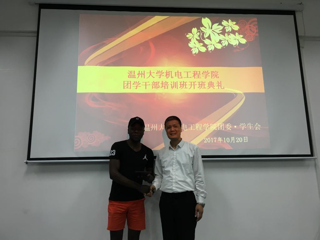 在开班之前,追新番 党总支书记周荣为来自津巴布韦的文体部名誉部长Alfred颁发了聘书。