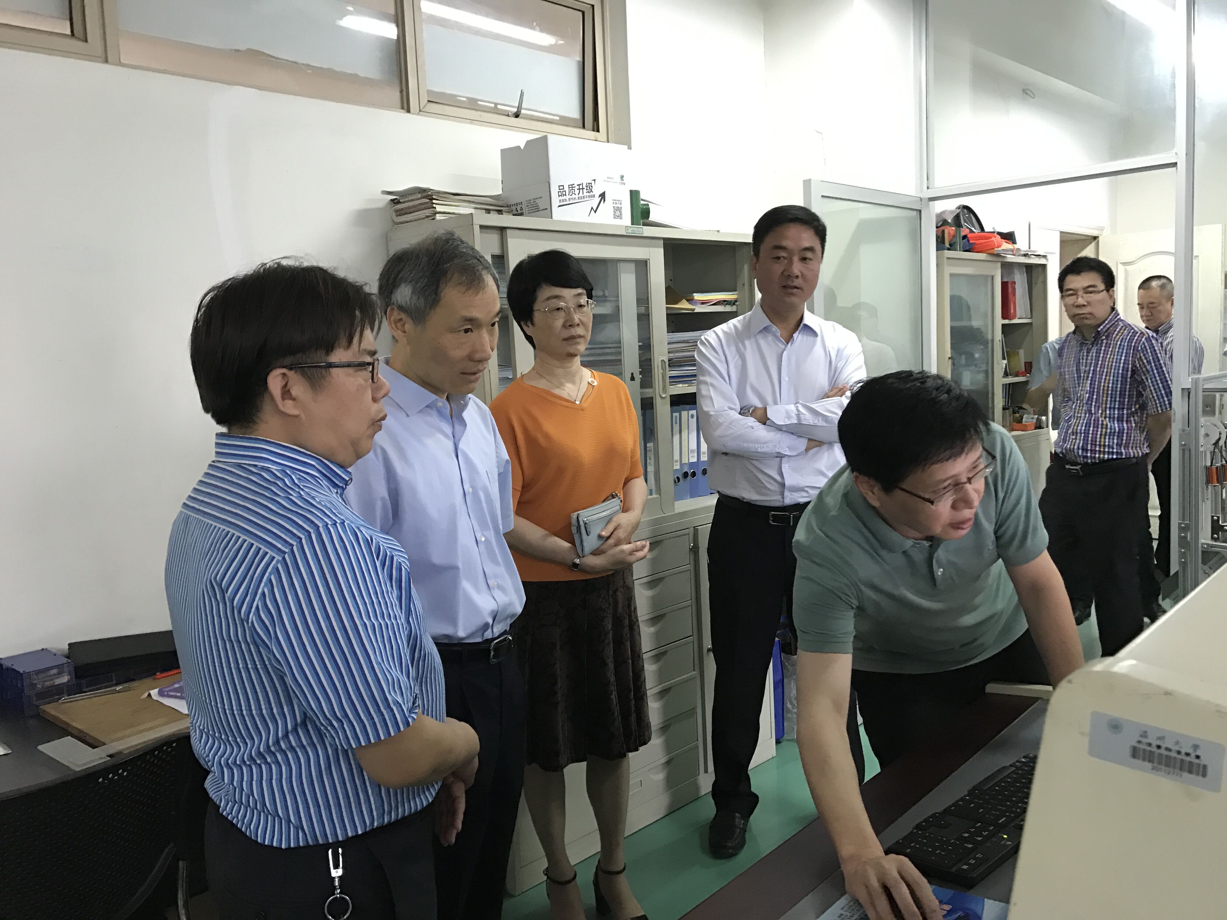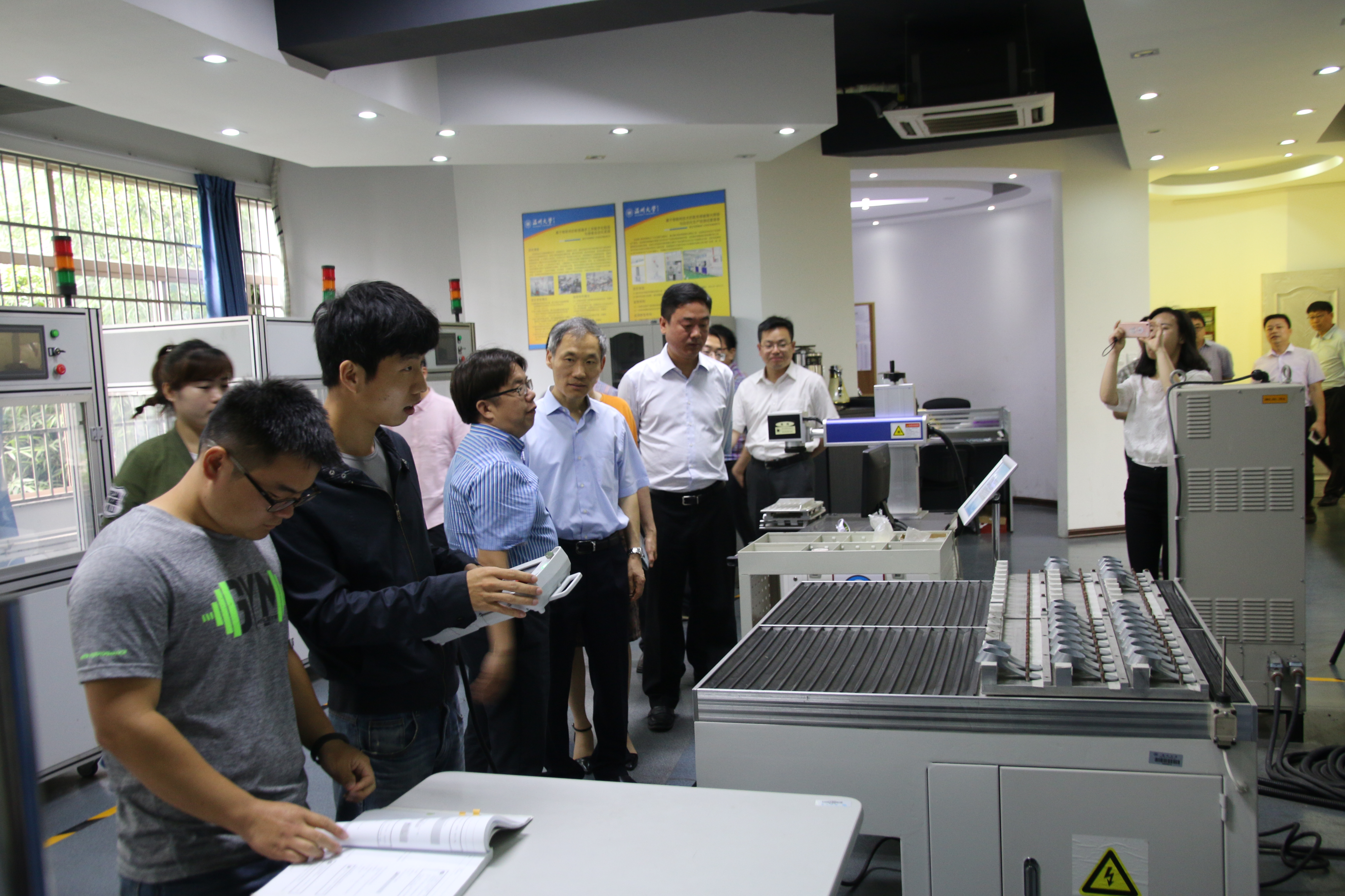 5月16日上午,温州市副市长殷志军一行来追新番 调研,到追新番 考察激光加工机器人国际科技合作基地和浙江省激光加工机器人重点实验室,市科技局、卫计委、教育局等有关部门负责人陪同调研,学校党委书记林娟娟、副校长钱强陪同考察。