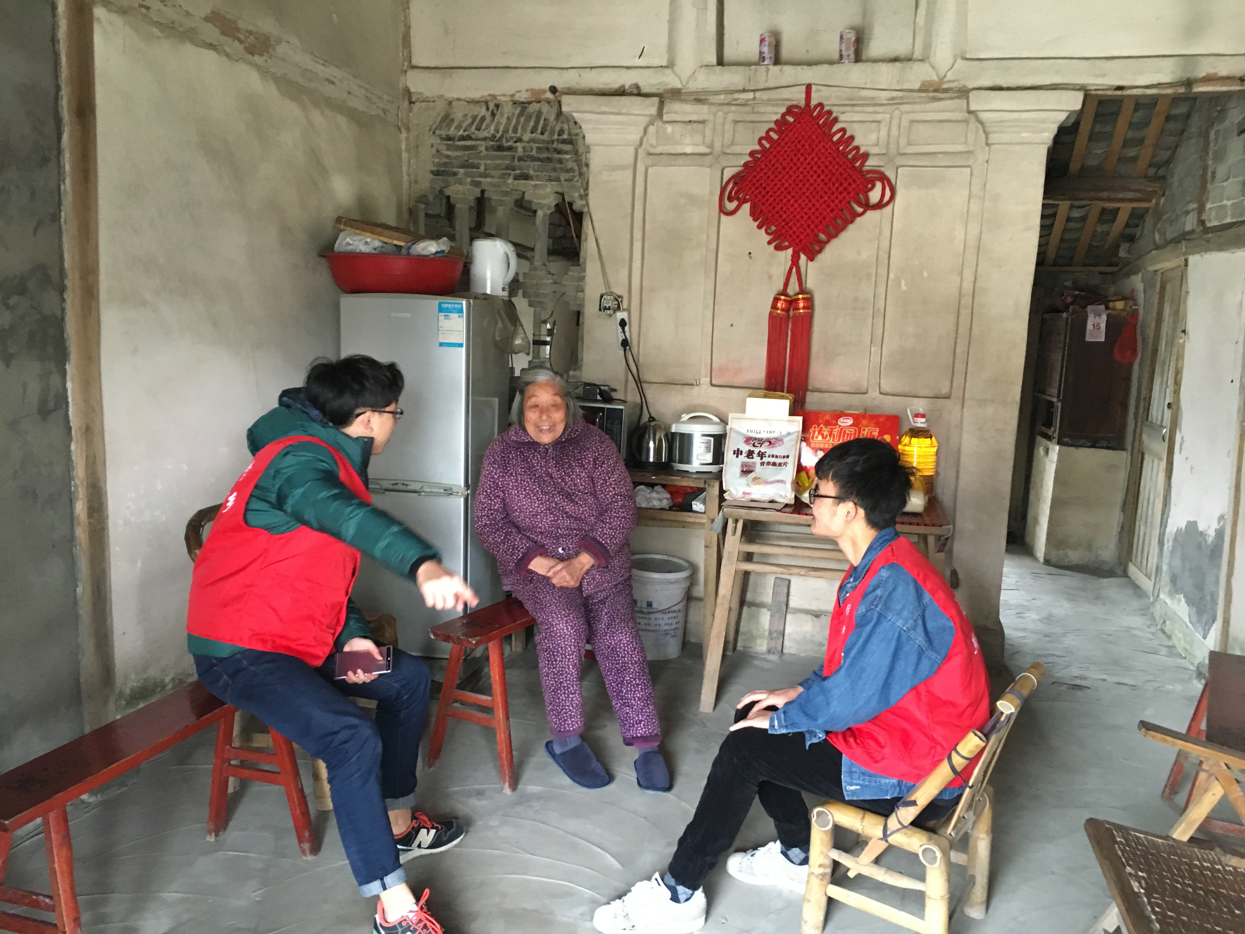 来自机电学院的新青年们在学院老师以及灵昆街道九村村村委宋书记的带领下来到了灵昆街道九村的几户孤寡老人家中,为他们送去了寒冬中的温暖。长久独居的老人见到了新青年们的到来显得无比的高兴,虽然在方言交流上遇到了一点困难但是新青年们用朴实的行动来给老人们送去温暖。大家给老人送上了生活必须的大米、油以及一些营养品,爷爷奶奶们忙着招呼大家坐下,感谢同学们在年关赶来为他们送上温暖。新青年们与老人聊起了生活上的各方面,老人们向大家诉说了生活上的种种不易,但是爷爷奶奶们依然能够乐观的面对,他们说道这也离不开像新青年们这样的来自社会各界、政府对他们的关心。大家都表示关心老人家们是新时代青年们应尽的力所能及的一件事,温暖老人,同时也是对于社会的一种回馈。与此同时,新青年们为老人们送去自己书写的春联,为老人们摘去家中长久未更换的春联,贴上饱含暖意的崭新的春联以及福字。