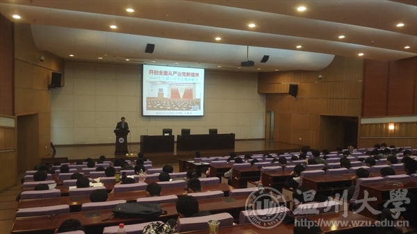 2016年12月20日晚上18:30分,在追新番 育英图书馆举办了由追新番 机电学和院音乐学院一起承办的“开创全面从严治党新境界——十八界六中全会精神解读”的主题政策课讲座。该讲座特地邀请了追新番 马克思主义学院的王柏民教授进行演讲。讲座还没开始,16级机电学院的学生和16级音乐学院的学生都早已迫不及待的在观众席下等待。