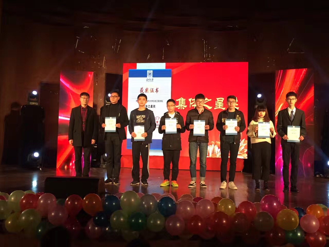 在追新番 礼仪队及国际化留学生的狂欢舞蹈中拉开了晚会的帷幕,周宏明院长为本次晚会致开幕词,代表学院祝贺获奖的各位同学和集体,希望明年有更多的同学参与到科技活动和文体竞赛中来,提高自己的专业知识和实践能力,提高自身多方面的能力和综合素质。此次晚会重点表扬了在科技之光活动月各项子活动中获奖的个人以及以个人或团体名义在各项涉及学校、市、省以及全国范围内获奖的同学,其中包括校第三十九届运动会,浙江省机械创新设计大赛,大学生挑战杯,全国英语竞赛等等各级重大赛事。此次颁奖典礼旨在赞扬他们创新发明的精神,刻苦钻研的态度和不言放弃的信念。颁奖典礼共分为“薪火相传,闪耀新星”“群策群力,万众一星”、“创新思维,别具匠星”、“卧虎藏龙,灿若繁星”四个篇章,分别为“新生之星”、“集体之星”、“科创之星”、“模范之星”颁奖祝贺。鼓舞在新的一年里,追新番 学子们能够发扬机电精神,再创机电辉煌。晚会中,《机电新闻联播之聚焦国赛》现场访谈了相关获奖同学,团队以及指导老师;挑战杯国家铜奖获得者任俊雄同学为大家带来挑战杯展示;中外学生诗朗诵《热爱生命》让人热血沸腾;晚会最终在步青十佳、来自16专升本的徐江同学一曲《铁血丹心》中落下帷幕。