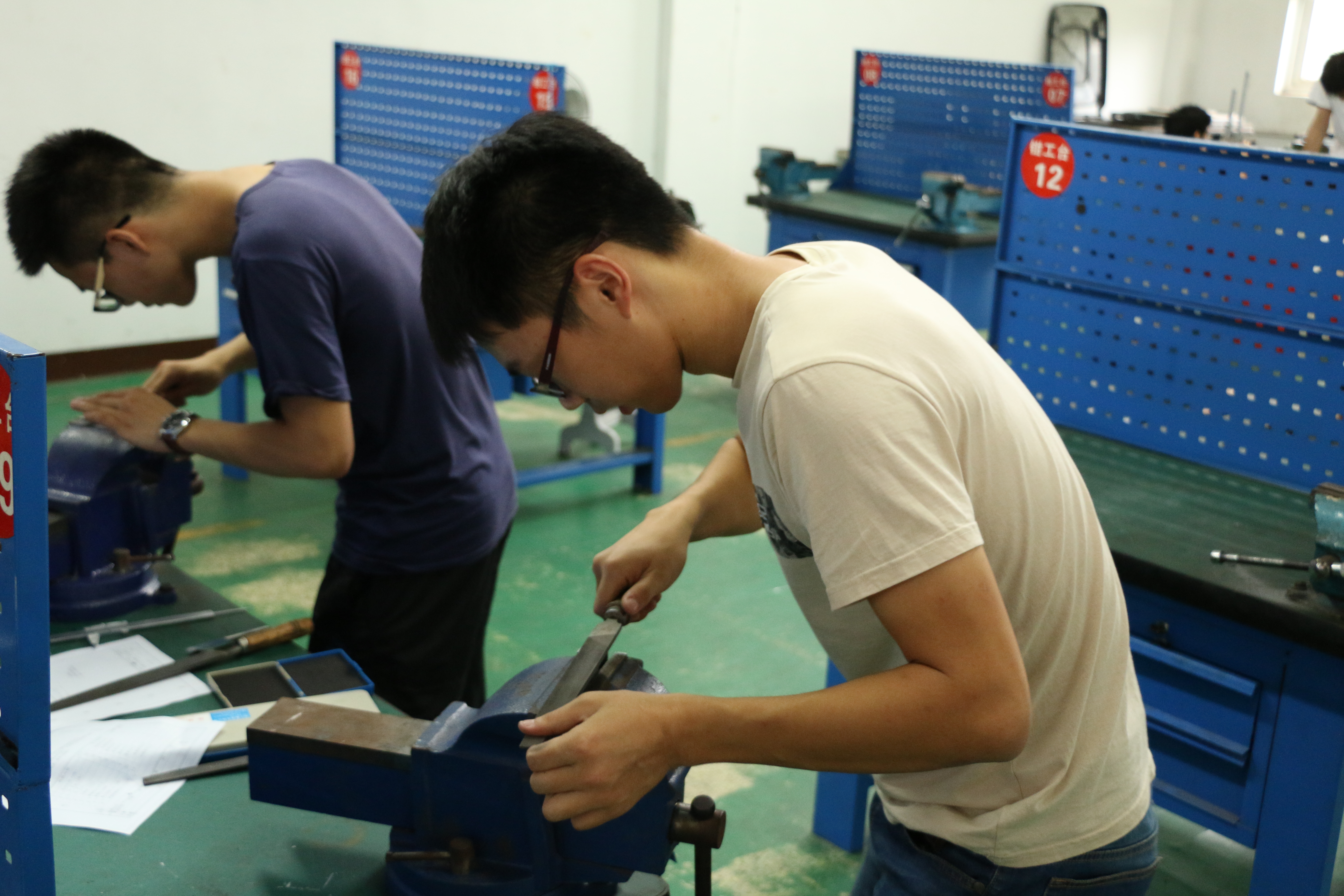 比赛开始前,老师认真为学生们讲解各种工具及其操作方法。学生们仔细聆听,踊跃提问,老师耐心教学,细心解答,场面十分和谐。各类工具都介绍完毕后,比赛正式开始。一时间,工训中心激起头脑与铁片的大风暴。切、割、挫、钻、磨每一位机电学子都使出十八般武艺,将自己百分之百的热情与金秋时期特有的芬芳气息共同注7*7的小铁片当中,重现童年时期那份纯真与美好。大二大三的同学也是再一次积极的投入到本次大赛,给大一同学做了良好的示范和榜样。