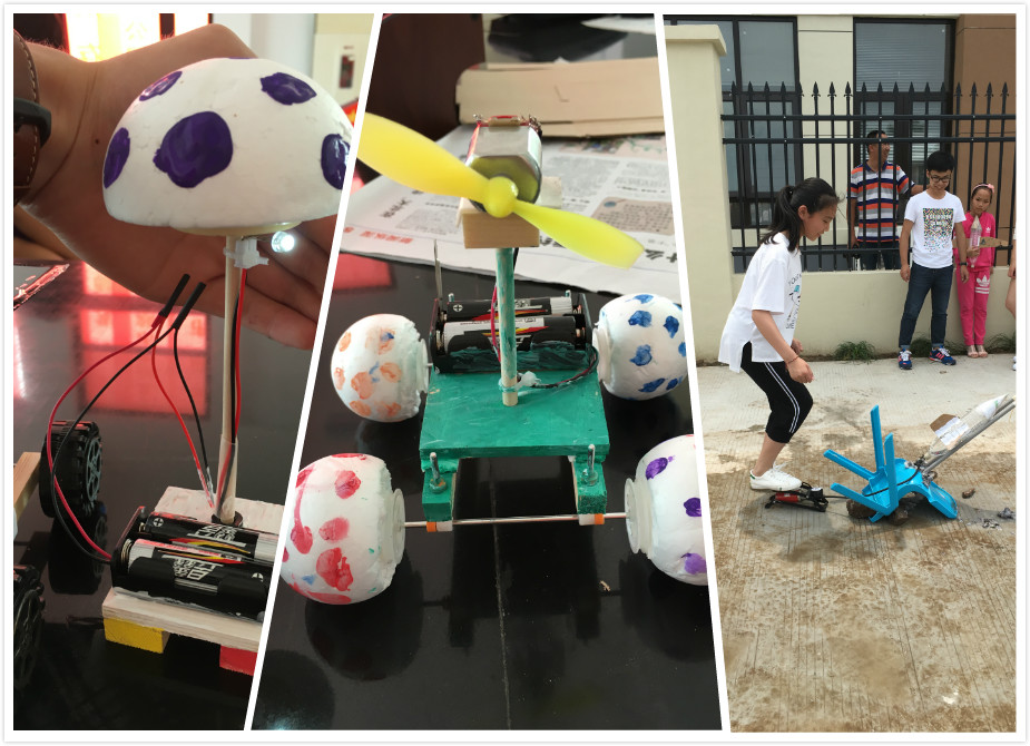 到达九村村委会,村书记和孩子们早已饱含热情的等待着新青年的到来。而后,活动就开始了。两两成组的孩子们各由一位新青年带领,开始了奇妙的科技小制作之旅。5组小朋友参与制作了水火箭,4组小朋友选择了太阳能小车,风力小车等其他科技小制作。在水火箭的制作过程中,孩子们除了在哥哥姐姐们的指导下给瓶子加上了让它保持平稳的机翼,也不忘孩子的天性,给自己的水火箭加上了喜欢的装饰。在制作的过程中,孩子们掌握了让水火箭飞起来的秘密――身边最常见的水和空气,在水火箭顺利发射的那一刹那,孩子们一片惊呼雀跃,几个调皮的孩子还抢着来踩打气筒,发射自己亲手制作的水火箭。围观的家长们也趁机鼓励孩子们要好好学习,真正明白科技小制作中蕴含的科学知识。最后,机电团学的新青年们给活动中表现积极的小朋友分发了带去的科技小制作材料包,希望他们能够开动脑筋,依靠自己的能力去完成科技小制作。