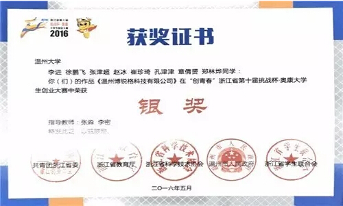 上周末,由共青团浙江省委员会、浙江省教育厅、浙江省科学技术协会、温州市人民政府、浙江省学生联合会联合主办的2016年浙江省第十届“挑战杯•奥康”大学生创业大赛在温州医科大学圆满结束。
