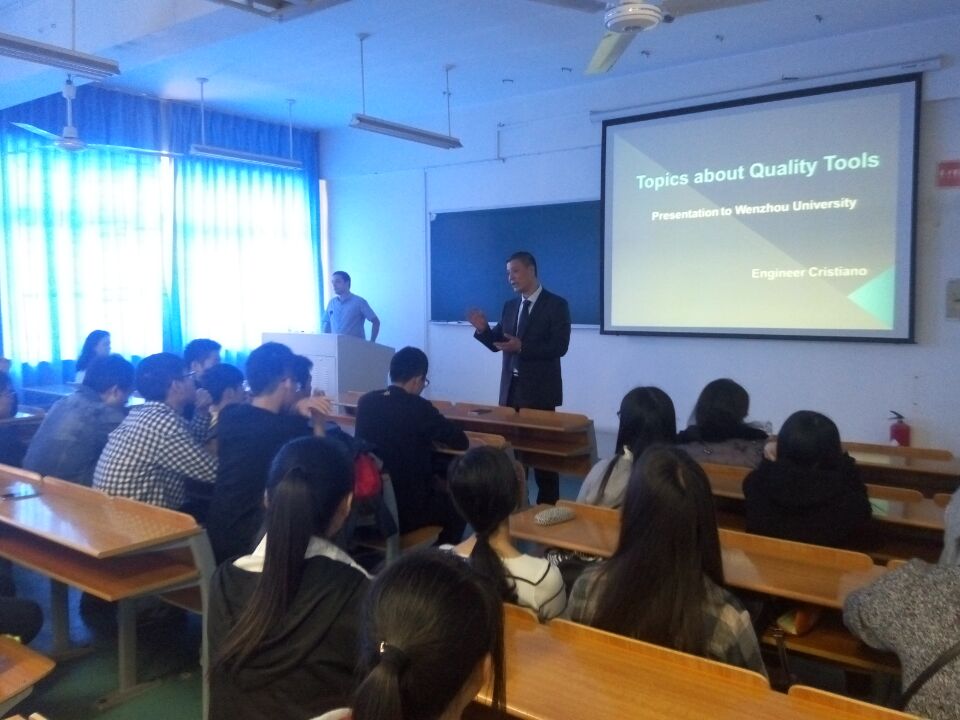 讲座开始之前,学院党支部总书记周荣代表机电学院向主讲人CRISTIANO DA SILVA VARZIM表示感谢。讲座以巴西概况开始,巴西和中国作为世界上两大发展中国家,其工业体系有许多相似之处,可以互相借鉴,巴西钢铁公司以高效率著称。之后,主讲人以他在巴西工作的经验为契机,介绍了他作为工程师中所遇到的各种问题以及解决方案。在巴西,首先要进行心理测试来确认工程师职位是否适合。此后又介绍了产品质量解决方案。比如,产品质量有缺陷,从供应商的原材料入手,而交到客户手中的产品出现问题,则有可能在运输过程中出现纰漏,像天气变化,运输环境都会极大影响产品质量。而在生产过程中出现的问题,则要查询公司之前记录的“产品问题”手册等等。要作为一名合格的工程师,主讲人告诉大家最两个重要建议。第一,不要一直待在办公室,要多到各个生产环节了解相关流程。第二,与公司各个部门的同事保持良好关系,不管是同级别的工程师,还是一线的操作工。他们的建议很有可能是解决产品质量的关键。