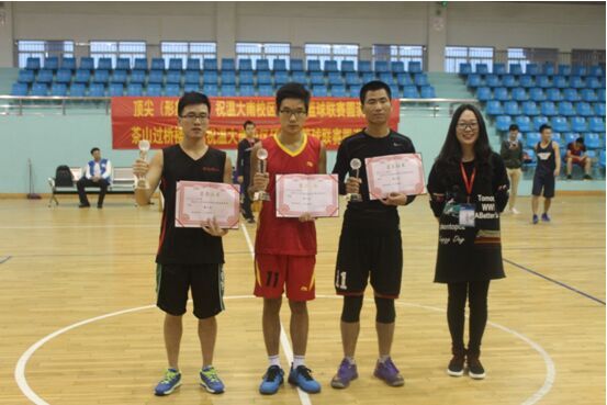 半决赛首先开始,机电一马当先,球队队员表现生龙活虎,队长楼凯凭借良好的个人能力和队员配合率先得分,当然,实力稍佳的建工球员也是当仁不让,两队得分交替领先,至中场结束,两队比分几乎持平,比赛来到下半场后,建工球员明显加大了攻击力度,机电球员也是稳扎稳打,步步紧追,比分差距微弱,随着而来的决胜节,机电球员由于体力不支接连出现失误,建工队趁势反超,最终机电队痛失季军。随后现场工作人员按照事先的组织及时进行场地安排,最为精彩的总决赛随之在裁判的开场哨声中拉开帷幕,比赛一开场,化材学院球员发扬敢打敢拼的风格,个人突破,外线三分,远动进攻样样都有进球,其精彩的表现也是赢得了在场观众的阵阵掌声,而作为此次实力最强的物电球员当然没有慌了阵脚,其队员凭借各自之间的默契配合,逐步将分差缩小,当比赛进行到中场结束,双方战至32平;随后进行的下半场,双方球员都是拼尽全力去争抢每一个篮板,每一次球权,比赛瞬间进入到白热化阶段,最终,实力强悍的物电学院凭借良好的团队配合勇摘桂冠。此次篮球友谊赛也顺利落下帷幕,随后进行颁奖仪式,三强球员合影留恋,工作人员及时清场,比赛获得圆满成功。