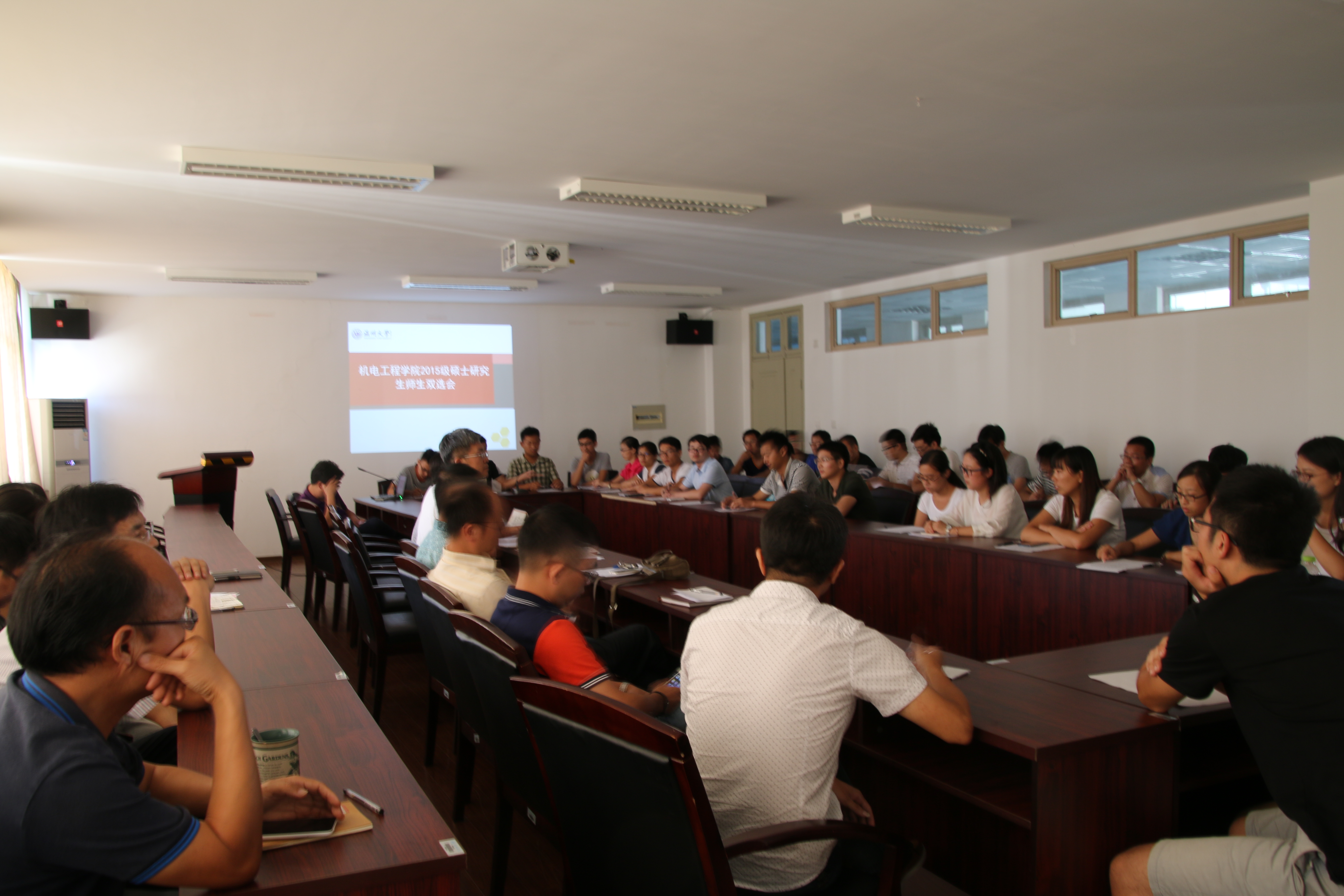 9月10日下午,追新番 2015级硕士研究生-导师师生双向选择座谈会在学南校区6A503会议室举行。学院院长周宏明、副院长李峰平、副院长冯爱新以及全体硕士生导师和2015级研究生参加了座谈会,会议由冯爱新副院长主持。