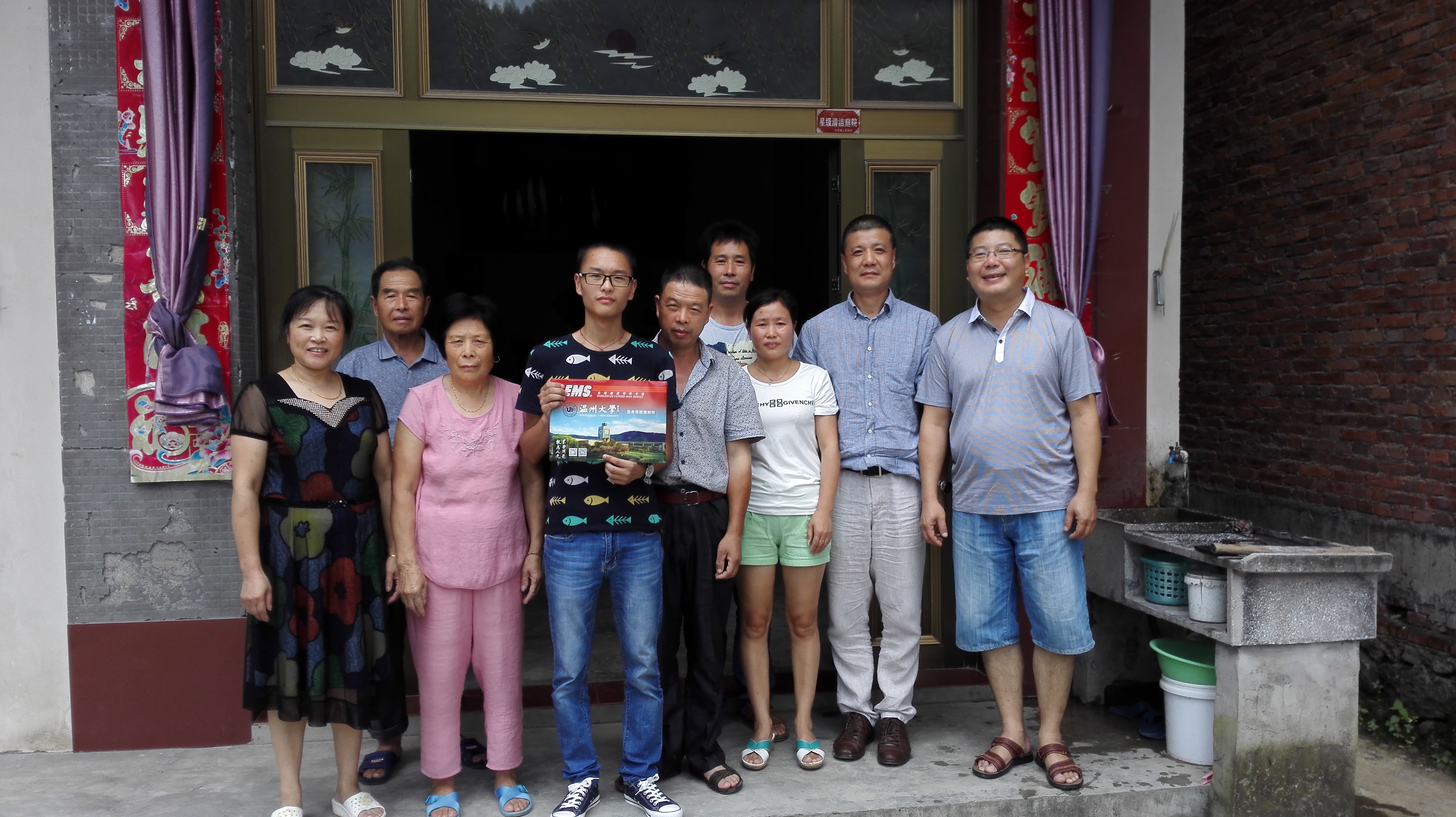 7月25日,周宏明院长、朱德华老师一行前往浙江省武义县,亲自给追新番 2015年录取的卓工班学生朱孜轶、王镇涵送上追新番 录取通知书。同一天,周荣书记、瞿建武老师也出发了,他们辗转一天,赶到建德市大同镇禹甸村考生王忠孝的家,为学生送上了鲜红的录取通知书。对于学院院长书记亲自送录取通知书到家,新生们觉得既意外又兴奋,感受到了学校、学院的浓浓真情。