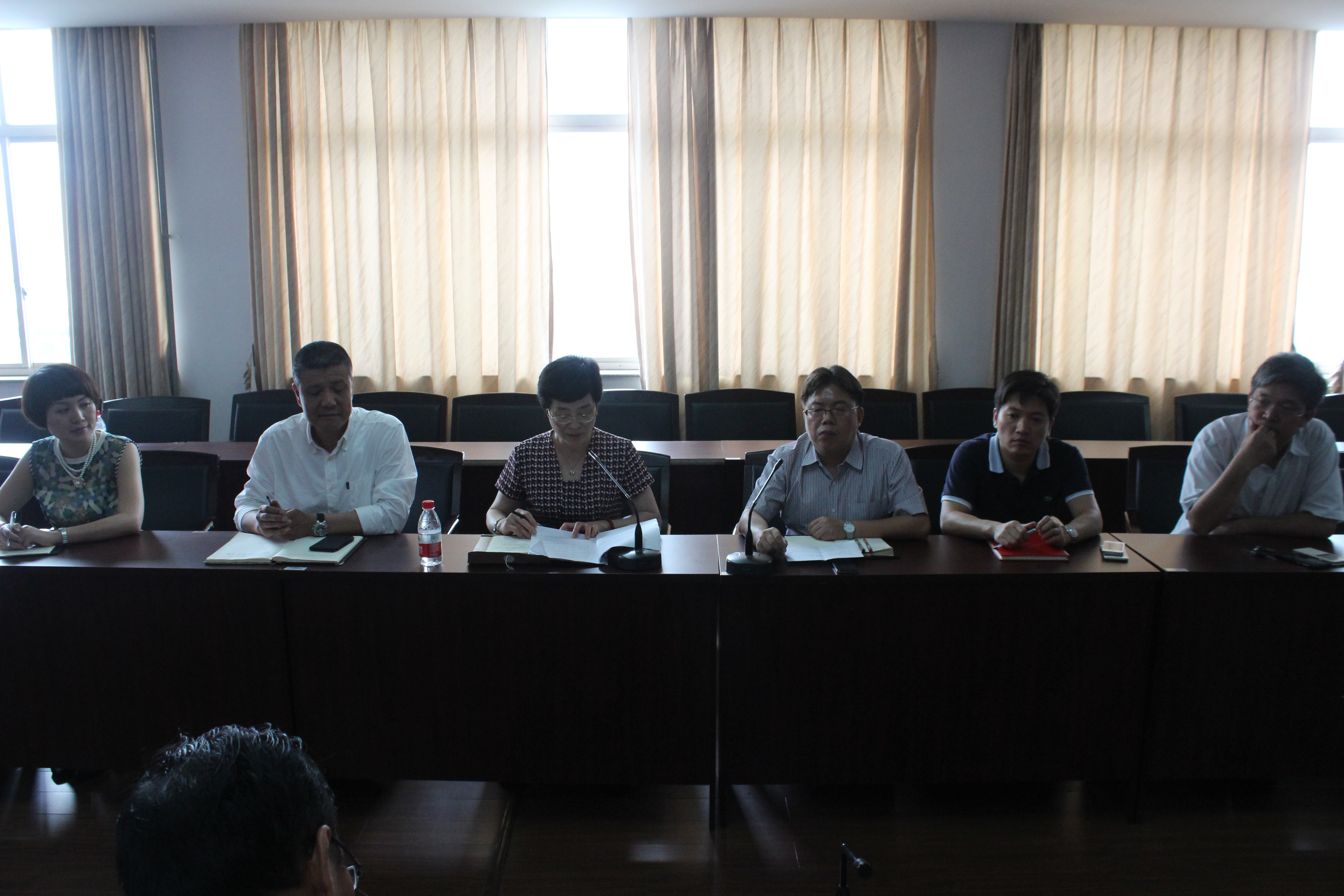 6月8日上午10:00在A503会议室, 学院召开中层会议迎接新的领导班子成员上任。会议由院长周宏明主持,校党委副书记林娟娟、副院长李峰平、冯爱新,新提拔、新调任的班子成员及学院中层、学科(术)带头人共14人参加了本次会议。