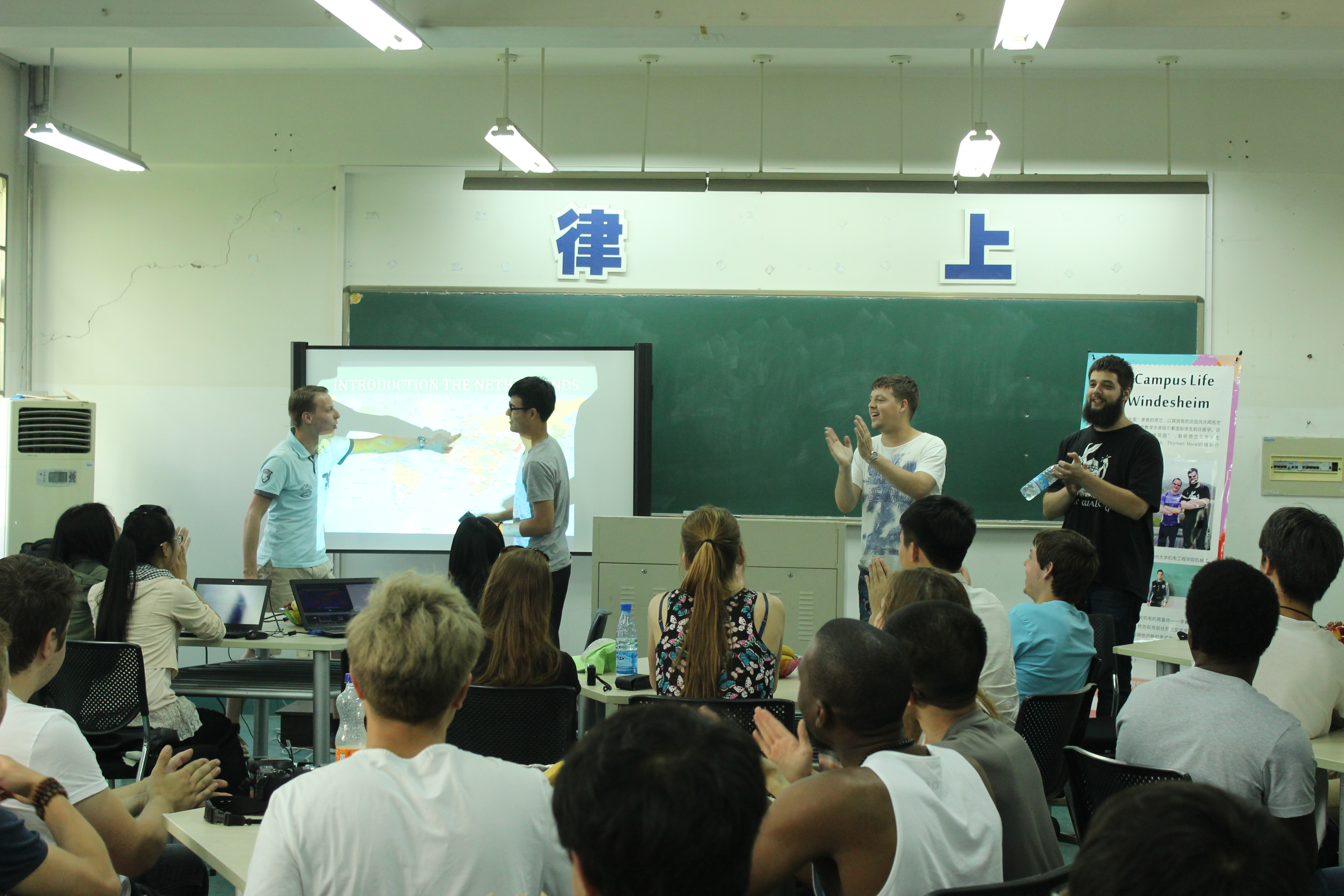 2015年5月13日,来自荷兰温斯汉姆应用技术大学的留学生与追新番 的机械工程国际化专业的留学生以及学院的本科生展开了一场别开生面的交流会。