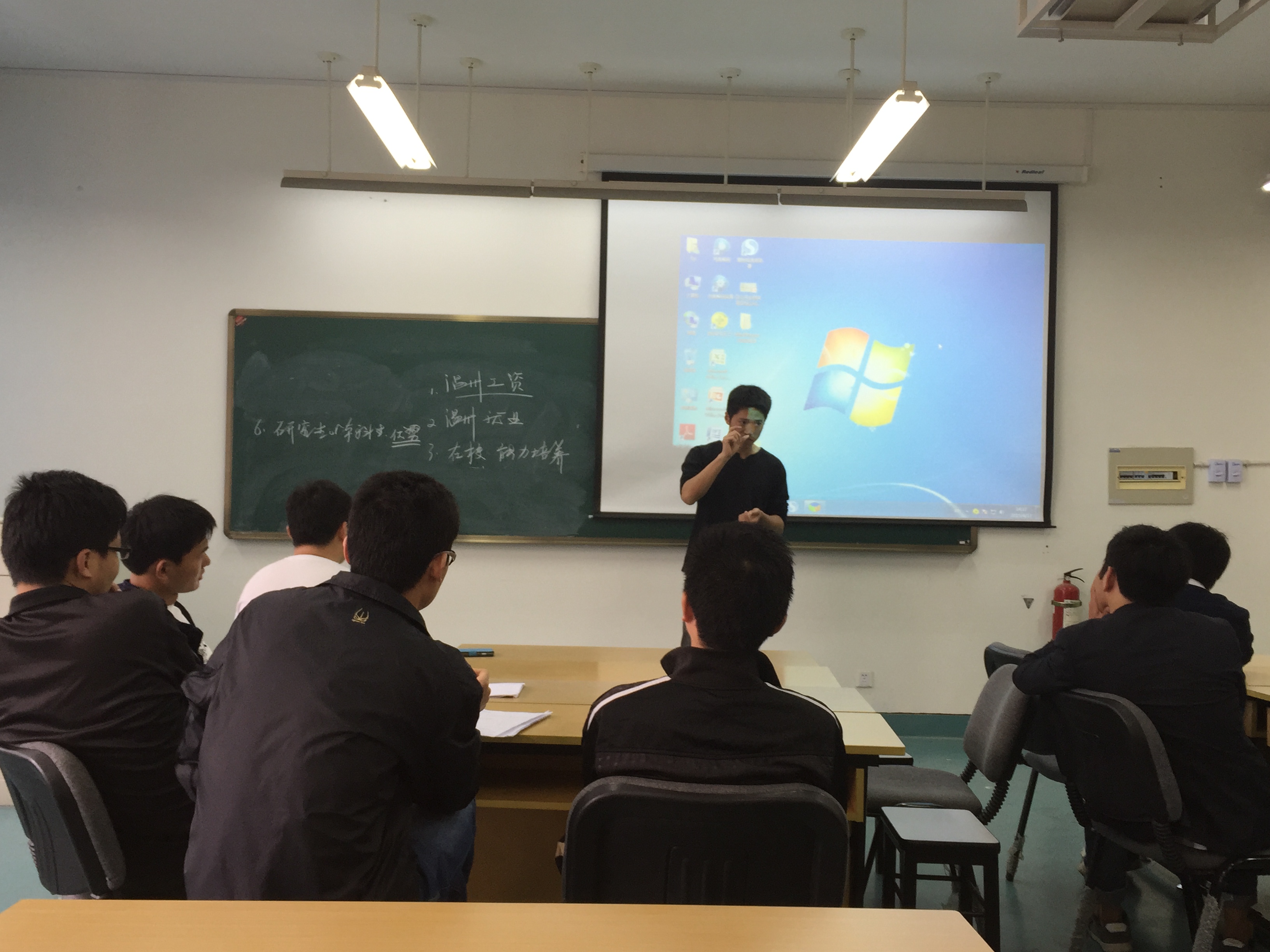 活动伊始,钱合激老师让在场的研究生说出自己对职业前景的困惑,并对自己过去的研究生生活进行自我评价。活动从研究生们关注的就业热点和自身优劣势分析展开,主要集中在温州本地的就业状况、在校研究生与企业交流融合点、研究生就本科生而言其优势在哪、在校研究生能力提高的着重点等,钱老师对此进行了一一分析解答。