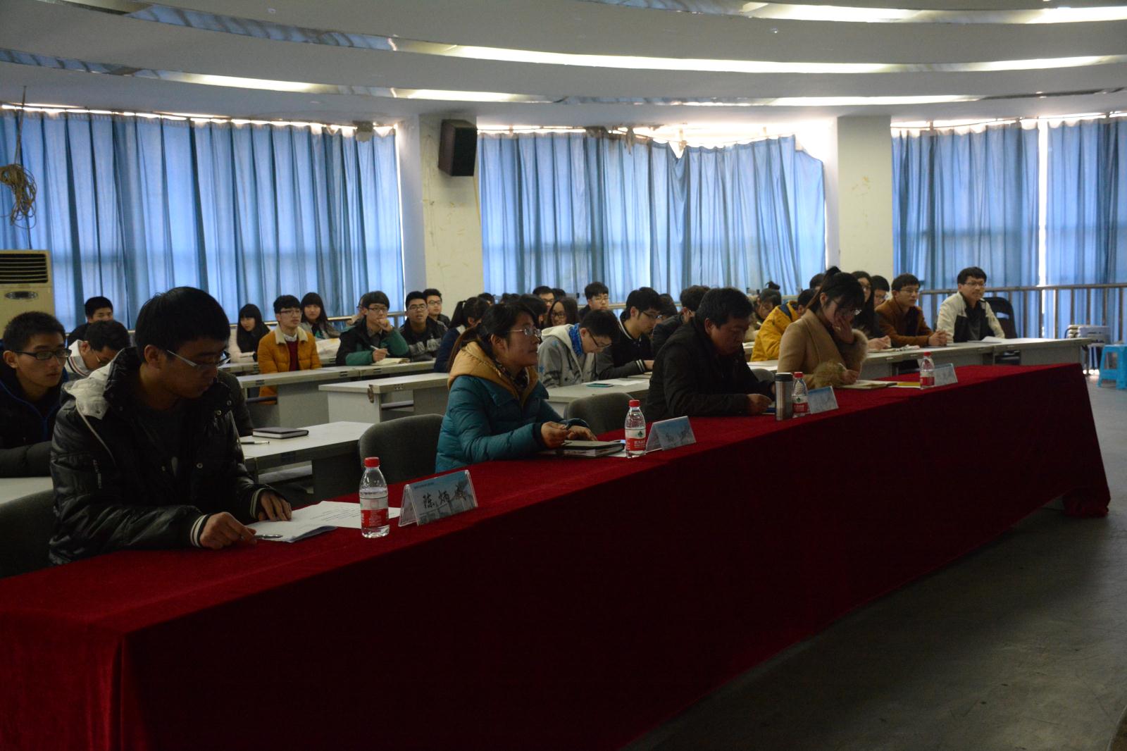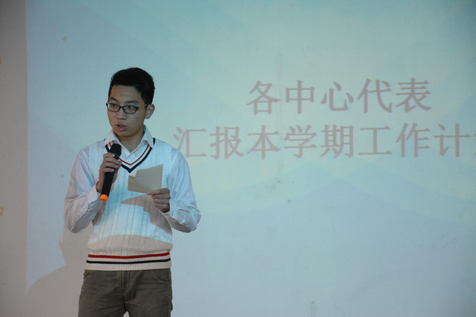 大会在《光荣啊,中国共青团》充满激情的团歌声中拉开序幕,首先是孙双老师对上一学期的工作进行了总结。上学期各种工作的顺利完成与各个中心的努力分不开。孙双老师对各中心进行了肯定,也指出需要进一步完善和挖掘的地方,尤其强调了宣传工作的重要性,不仅要完善宣传体系,更需要加强宣传力度。接下来是六个中心的代表介绍本学期中心的工作计划。虽然每个中心的职能不一样。但有一个共同点就是这个学期要加强对干事们的培养,提高工作效率,加强相互配合,听着代表们的讲话,大家被他们干劲十足的神情所感染。大会第三项是主席团副主席代表张建文发表讲话。她讲了开会时应注意的事项,还讲出了机电学院存在的不足以及与其他学院的差距。她的讲话很好的鼓励了大家。接下来是答辩环节。由主席团来解答各班级代表提出的问题。