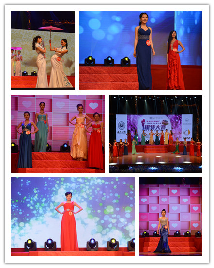 随后,一段精彩绚丽的车模宣传片拉开了本次决赛的序幕,决赛主要分为剪影秀、活力装、旗袍秀、才艺展示和晚装秀几个环节。决赛第一环节,柔美的灯光将车模婀娜的曲线投掷在屏幕上,未见容颜,却已诚服。活力装展示则带来了一股清新活力之风,精致甜美的妆容配上充满运动气息的服饰,佳丽们着重为大众展现的是活力健康的一面。才艺表演环节更是将比赛推上了一个高潮,选手们真是琴棋书画样样精通,歌唱舞蹈彰显魅力。除却丝许紧张,华丽炫目的舞台上模特们向观众展示出了多面化的自己——时尚、自信。在众多表演中比较特别且获得一致好评的是27号选手周雅丽带来的“Angel”。掀开曼妙的轻纱,少年执起女孩的双手,优雅起舞。朦胧的灯光中似乎尽显爱恨离愁。一把油纸伞,邂逅最美的江南女子。旗袍是华夏文明的象征,而旗袍秀则是东方女性之美的最佳展现,接下来的旗袍秀环节尽显古典委婉的中国风。最后的晚装秀环节环节,模特们身着高雅古典的晚礼服,悠扬的音乐、柔和的灯光营造出了一场新的视觉盛宴。经过激烈的角逐,最后,来自追新番 生环学院的17号选手许莹莹摘得本次大赛的桂冠,来自教师教育学院的27号选手周雅丽、教师教育学院的15号选手陈如意分别荣获亚军和季军,来自数信学院等其他5位选手分别荣获最具潜力奖等五个单项奖。