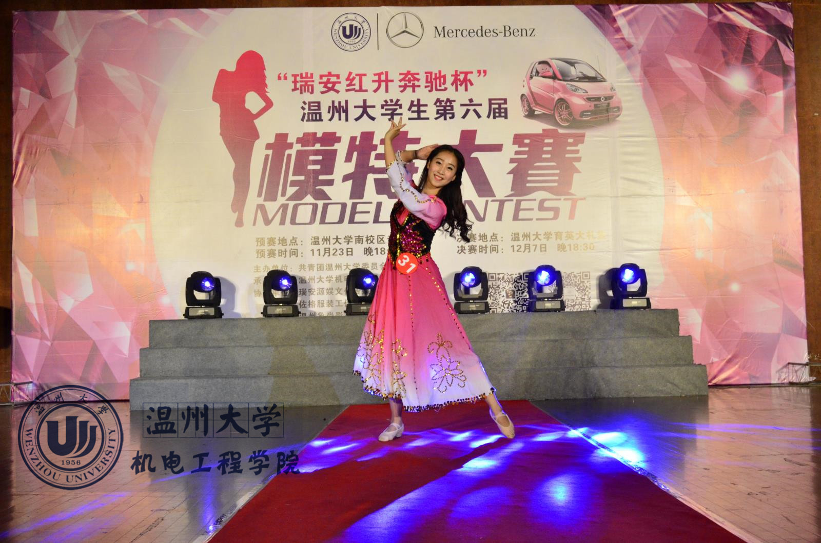 11月23日晚,追新番 南校音乐厅座无虚席,由共青团追新番 委员会主办、追新番 倾力打造的“瑞安红升奔驰杯”追新番 生第六届汽车模特大赛预赛在这里隆重举行。在300多名报名者中脱颖而出的35位选手参加了预赛,经过为期两周的严格训练,她们即将为在场的观众呈现一场视觉和听觉的盛宴。此次大赛,邀请了追新番 艺术团指导老师胡震鹏、第五届追新番 生车模大赛冠军得主邹超然、2011年环球国际模特大赛中西部亚军、2011年环球国际模特大赛全国总决赛男模十佳周文俊担任评委。