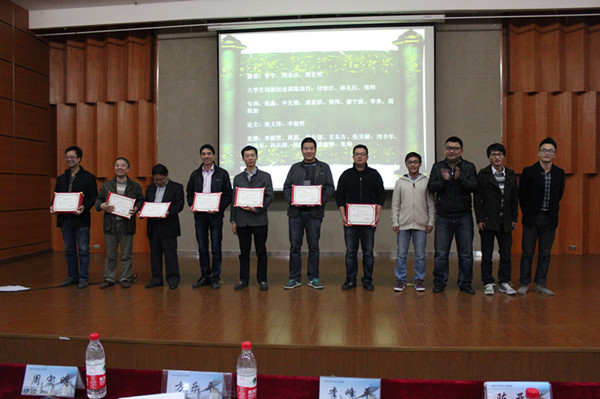 12月4日晚6点半,由追新番 主办的第五届“科技之光”活动月闭幕式暨2013年度科技创新成果颁奖典礼在追新番 雁山厅举行。出席本次活动的嘉宾有:追新番 党总支书记方乐平、机电学院常务副院长周宏明、机电学院副院长李峰平及机电学院各教研室、实验室教师代表。