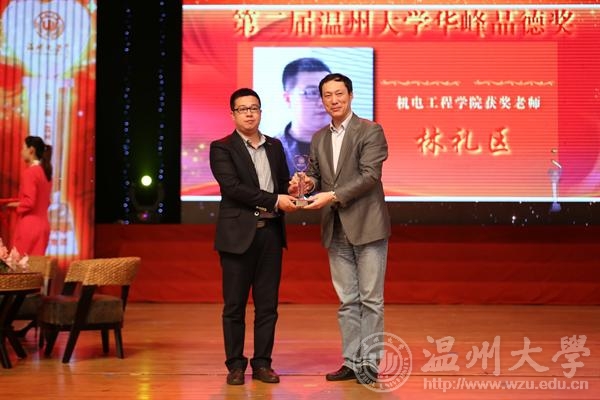 去年,他膝盖受伤动手术,医生千叮咛万嘱咐他必须卧床休息一个月,但一周后就拄着拐杖一瘸一拐的出现在办公室里,别人说他傻。他说放不下学院的工作和他带队的学生。正如评委会颁奖词所言:“他是一位学生比赛带队老师,一个勤勤恳恳的班主任,十二年来林礼区兢兢业业,象一颗螺丝钉坚守岗位。琐碎的工作,波澜不惊的生活,这位自称再普通不过的一线实验老师甘心象细砂填在石块之间,普通却不平凡。”