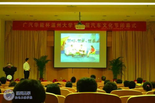 2012年6月8日晚,追新番 第七届汽车文化节闭幕式在雁山厅举行,党总支书记方乐平老师以及学生科科长钱合激老师出席了此次闭幕式。