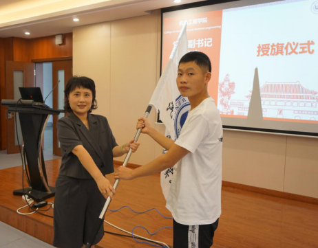 首先,“汽车世界”实践队队员王仕祥从建队历史、实践目的以及实践意义等方面详细介绍了实践队的基本情况,让老师、同学们对实践队有了进一步的了解和认识。接着,杨奇老师作了出征动员讲话,希望同学们经过社会实践的磨练,变得更加成熟、更加自信,并提出以下几点意见:一是统一思想,充分认识开展暑期社会实践活动的重要意义;二是明确任务,切实理解暑期社会实践活动的指导思想、方法步骤、实践要求;三是充分发挥专业特色和优势、突出社会实践活动的主题,增强社会实践活动的实际效果,健全社会实践活动的运行机制,推动社会实践活动的创新发展;四是精心组织,确保实践活动取得实效,从实际出发,对活动形式、地点、内容进行精心设计,合理安排,制定切实可行的方案,认真组织落实;五是加强宣传,营造氛围。团学组织要加强暑期社会实践活动的宣传工作,为活动营造良好的舆论氛围,扩大实践活动的影响面,提高学院的声誉。随后,党委副书记黄玮为“汽车世界”实践队进行授旗,实践队成员在陈宇同学的带领下,举起右手,进行了隆重的出征宣誓。