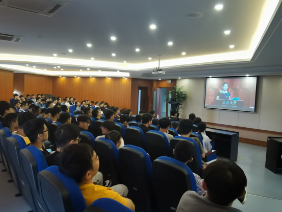 研究生也在B309观看由研究生部统一安排的新生第一课,认真倾听、认真做笔记。