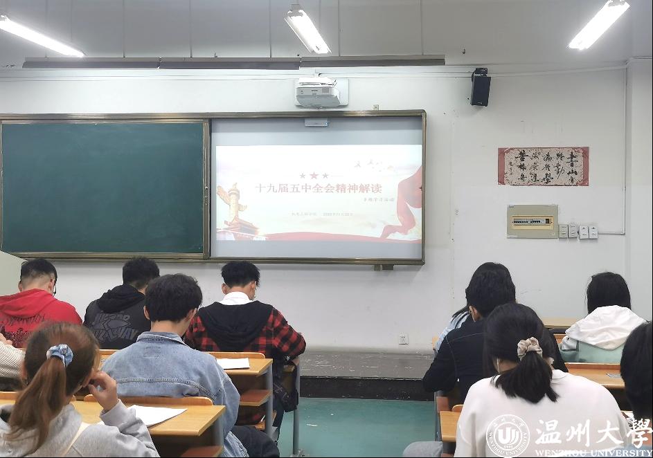 学院在组织各班团支书率先学习,交流提升的基础上,积极号召各班级召开以“奋进新时代 开启新征程”为主题的十九届五中全会精神学习会。