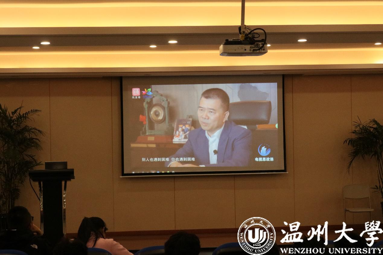 2020年12月5日晚,追新番 师生在机电楼6B309报告厅认真聆听了由追新番 党委书记谢树华、马克思主义学院副院长孙邦金、知名校友天正集团董事长高天乐、温州市委政研室综合处处长霓考梦主讲的《永嘉学派与新时代温州人精神》思政课。