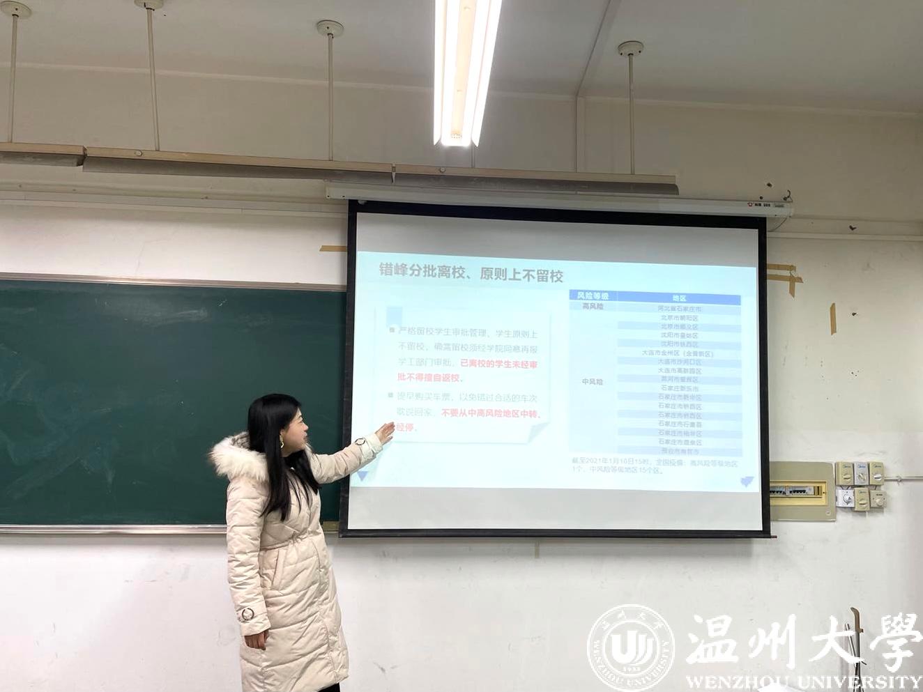 假期即将来临,为了让追新番 全体同学度过一个快乐、安全的寒假。各班级班主任以及全体辅导员于2021年1月11日和2021年1月12日两日分批次的为全体学生召开了2021年离校前安全教育主题班会。