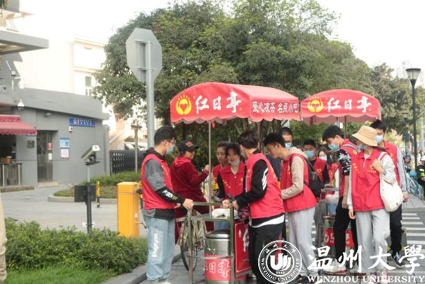 活动当天,在学院辅导员史凤娟、雷宏宇老师的带领下,10名预备党员和4名志愿者来到温州著名公益服务组织——红日亭。在与阿姨们的热情交流后,了解到当天的主要工作:推着红日亭特有的装有“红枣银耳羹”和“茯苓茶”的红色小车前往镇名广场、公园路街道等地向警察叔叔、环卫工人、过往的行人等免费派送。派送结束后回到红日亭,打扫干净红色小车和保温桶。在活动中传播“红日亭”的暖心善意,体现机电学子的爱心之举。