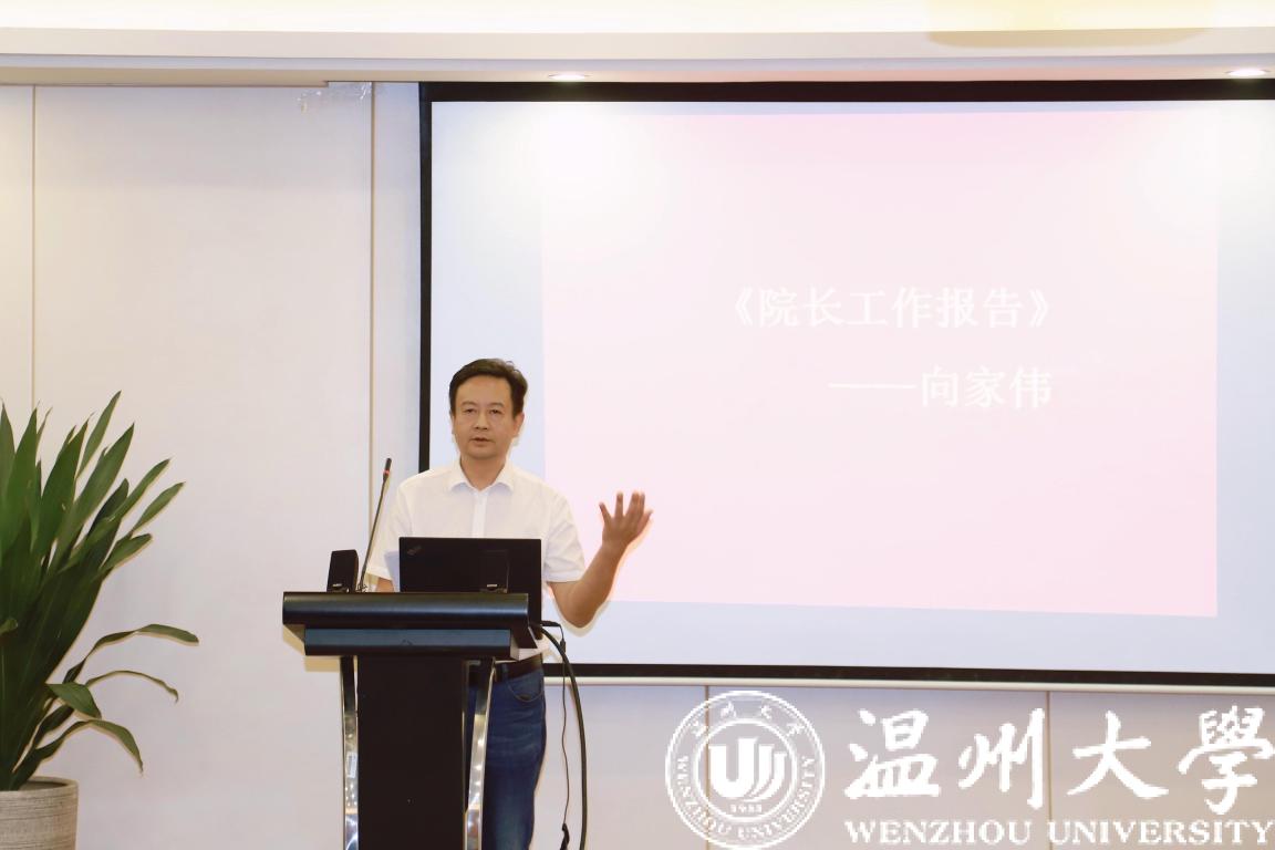 在完成大会预备会的各项议程后,全体教职工奏唱国歌。大会首先由向家伟院长作《院长工作报告》。报告着重回顾了2020年学院在学科与专业建设、人才培养、科研和服务地方、师德师风建设、思政教育、党建引领和安全稳定、激发学院活力、财务工作规范等方面所取得的成绩。对于2021年学院重点工作,向家伟院长指出,将围绕一流专业建设和升博两大主题,做好师德师风、人才培养、学科建设、专业建设、实验室建设、产业研究院建设、学硕专硕分类培养、大力加强研究所建设、人才引进、思政建设、“清廉机电”建设、两级管理体制改革、工会活力激发。向家伟院长还代表学院由衷感谢一年来积极进取、不懈努力的全体教职工,期待全院上下同心协力共同开创学院事业发展新局面。