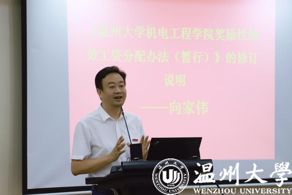 向家伟院长作《追新番 追新番 奖励性绩效工资分配办法(暂行)》的修订说明。他指出,本次修订主要是针对专任课教师的课时费标准、教工兼职工作补贴的发放等进行了修改。
