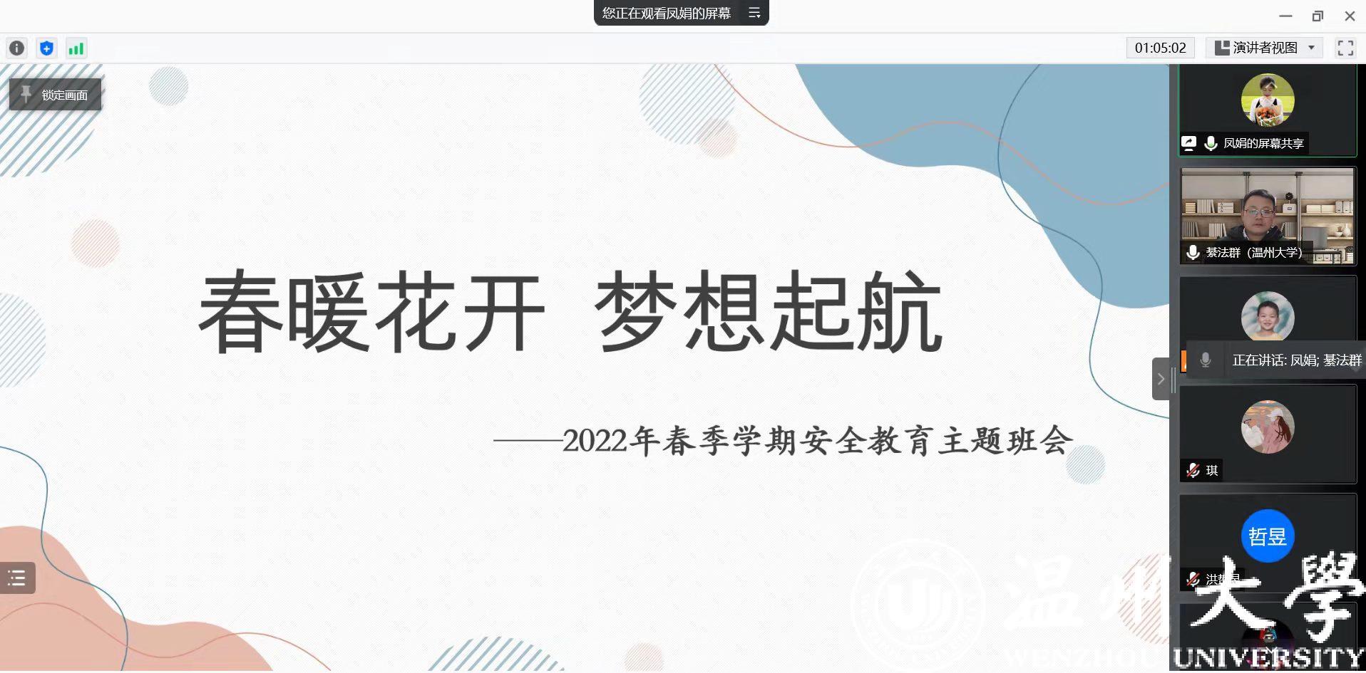 当前,新冠疫情形势依然严峻,为确保学生的健康安全,辅导员重点强调了学校有关疫情防控的要求,“非必要不离校”,佩戴口罩,进出校园主动出示温州防疫码,遵守学校疫情防控政策。