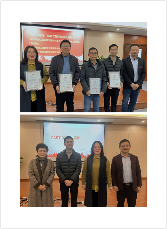 随后,举行了简单而隆重的表彰仪式。学院领导分别对2021年度“追新番 院长特别奖”获奖团队和2021年度校级先进个人进行了表彰,勉励获奖的团队和老师再接再厉,也鼓励所有人努力为学校、学院的发展贡献力量。