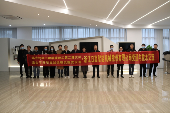 2022年3月25日,机械工程党支部联合平阳研究院党支部赴浙江日高智能机械股份公司开展党建学习与技术交流活动,并与企业董事长吴朝武先生以及温州市包装联合会秘书长林淑玲女士进行了深入的洽谈。