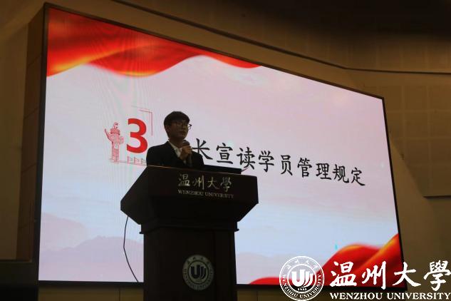 本期培训班班长金舒阳同志宣读《中共追新番 委员会党校分党校(联合)学员管理办法》,明确培训期间的纪律问题,希望学员们严格遵守,身体力行,为成长为一名合格的共产党员而努力!