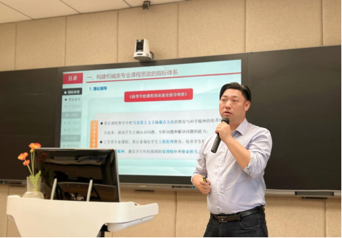 姜锐老师从课程思政的实施背景、实施基本要求、课程思政育人模式等三方面做了题为“机械类专业课程思政实施与评价”的主题发言,全面介绍了追新番 构建的第一第二课堂联动“知识传授、能力培养、价值引领”三位一体的课程思政育人模式,详细阐述了学院在课程思政融入路径、课程思政教学评价等方面的具体做法,深入解读了构建机械类专业课程思政指标体系的理论逻辑和实践依据,总结了课程思政实施的三大要点:关键在教师、重点在融入、难点在评价。