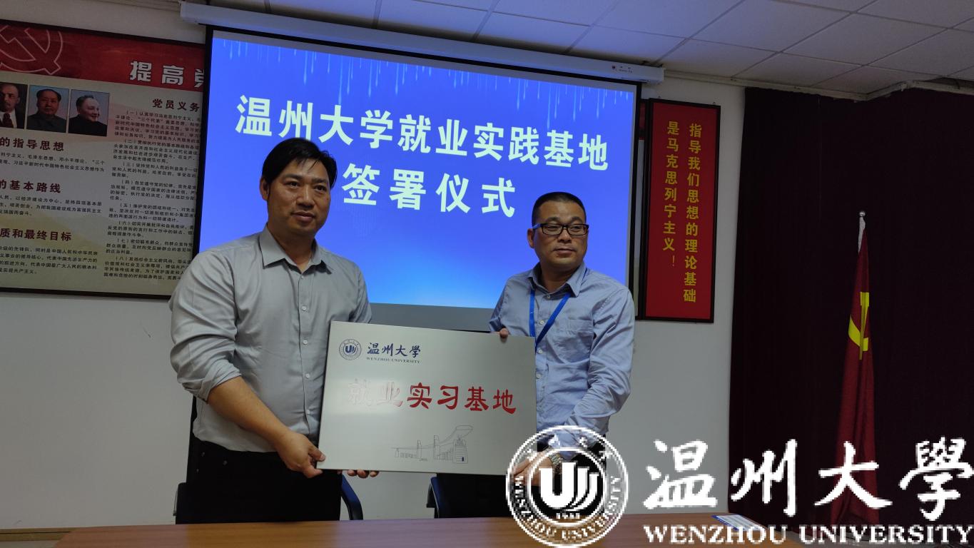 姜锐副院长、蔡庆明总经理代表校企双方签订就业实习合作协议,姜锐副院长向合兴集团有限公司授牌,正式在该公司建设“追新番 就业实习基地”。