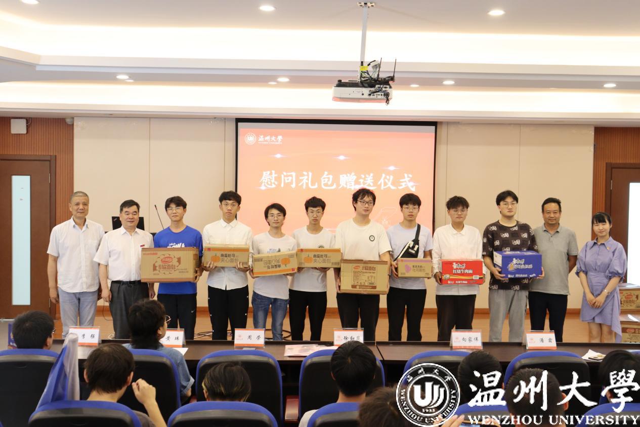 随后,副校长徐和昆发表讲话。徐校长指出,今年追新番 暑期社会实践以“喜迎二十大,永远跟党走,奋斗新征程”为背景,围绕不同主题开展特色实践活动。徐校长也对同学们提出了三点要求:坚守安全实践不放松;坚持服务社会导向不动摇;坚信知行合一理念不懈怠。接着,由徐和昆校长、周荣书记、向家伟院长和潘霜书记为追新番 各实践队颁发礼包。各实践队队长带领一名成员走到台前,接受来自学院的慰问礼物。