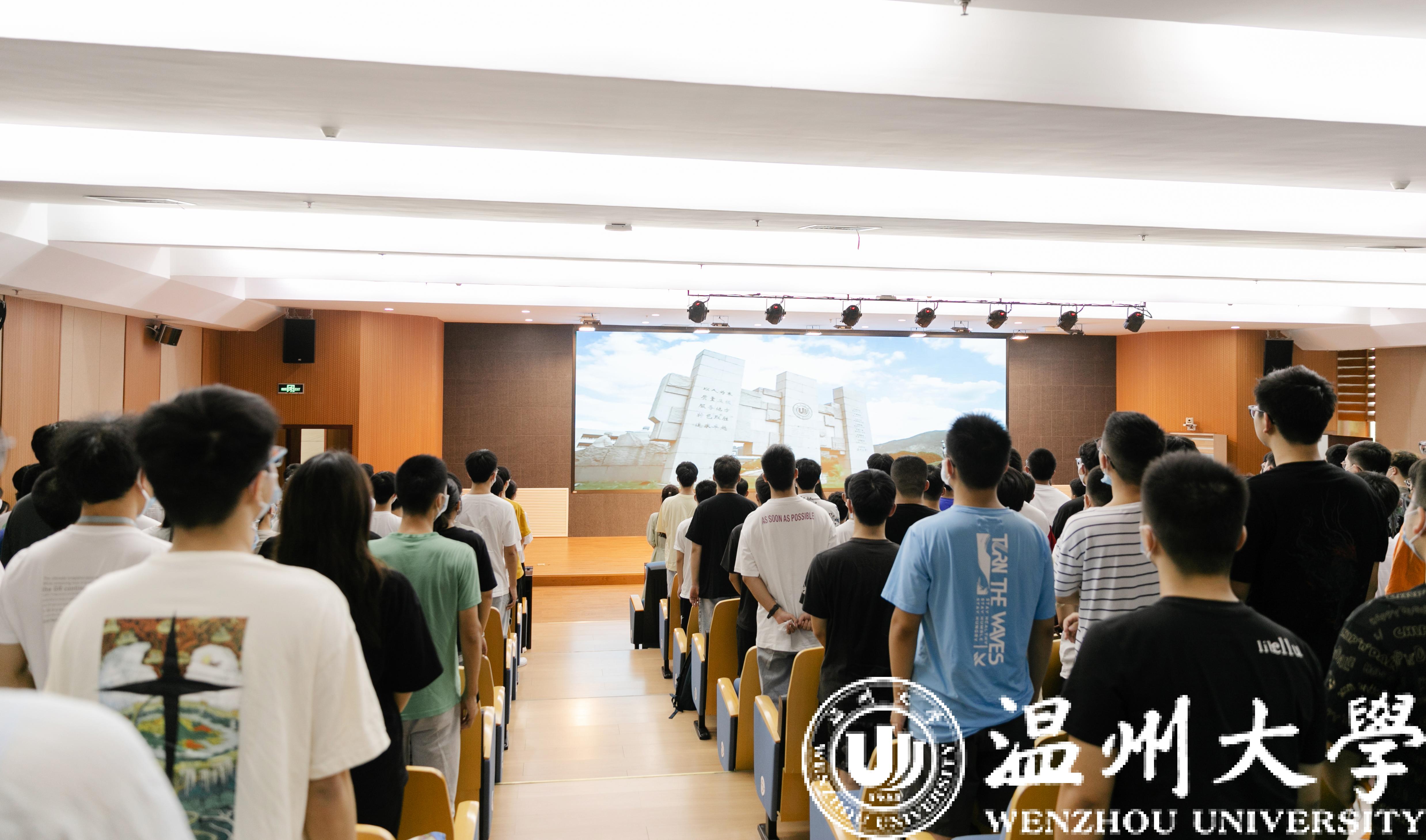 新生见面会第七项议程,全体起立,齐唱校歌,相信“求学问是、敢为人先”校训精神将成为同学们的大学生活的主旋律,希望同学们能够用笔书写人生的答卷,让梦想飞跃在茶山高教园区上空。