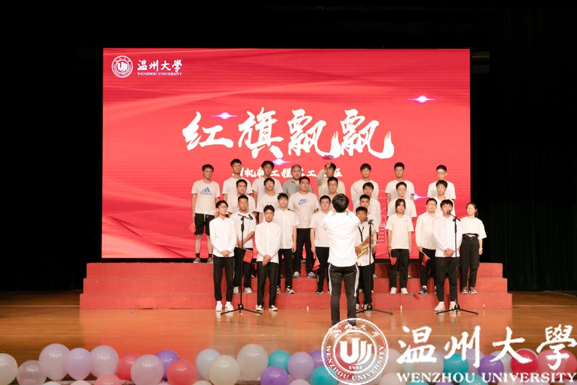 一支支班级队伍昂首挺胸,一首首红色歌曲回荡在校园上空。《中国军魂》、《渴望光荣》、《打靶归来》、《强军战歌》等,同学们用嘹亮的歌声唤起了慷慨报国的凌云壮志。《我爱你中国》、《我和我的祖国》、《大中国》等唱出了同学们对祖国拳拳赤子之心。《我们都是追梦人》、《有我》等则是唱出了青年们的责任与担当。