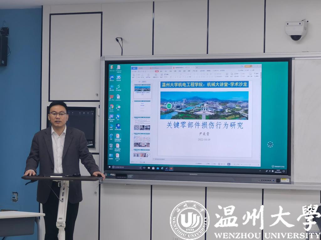 经主持人一番介绍后,本期学术沙龙就拉开帷幕。首先由尹美贵老师做主题为“机械零件的损伤行为研究”报告。多年来尹老师一直从事机械工程产品研发及服役行为研究工作,涉及装置研发、零部件表面处理及寿命预测等多方面的工作。他从三个不同的方面研究背景、研究现状、预期结果与展望阐述了研究工作的内容及应用前景。