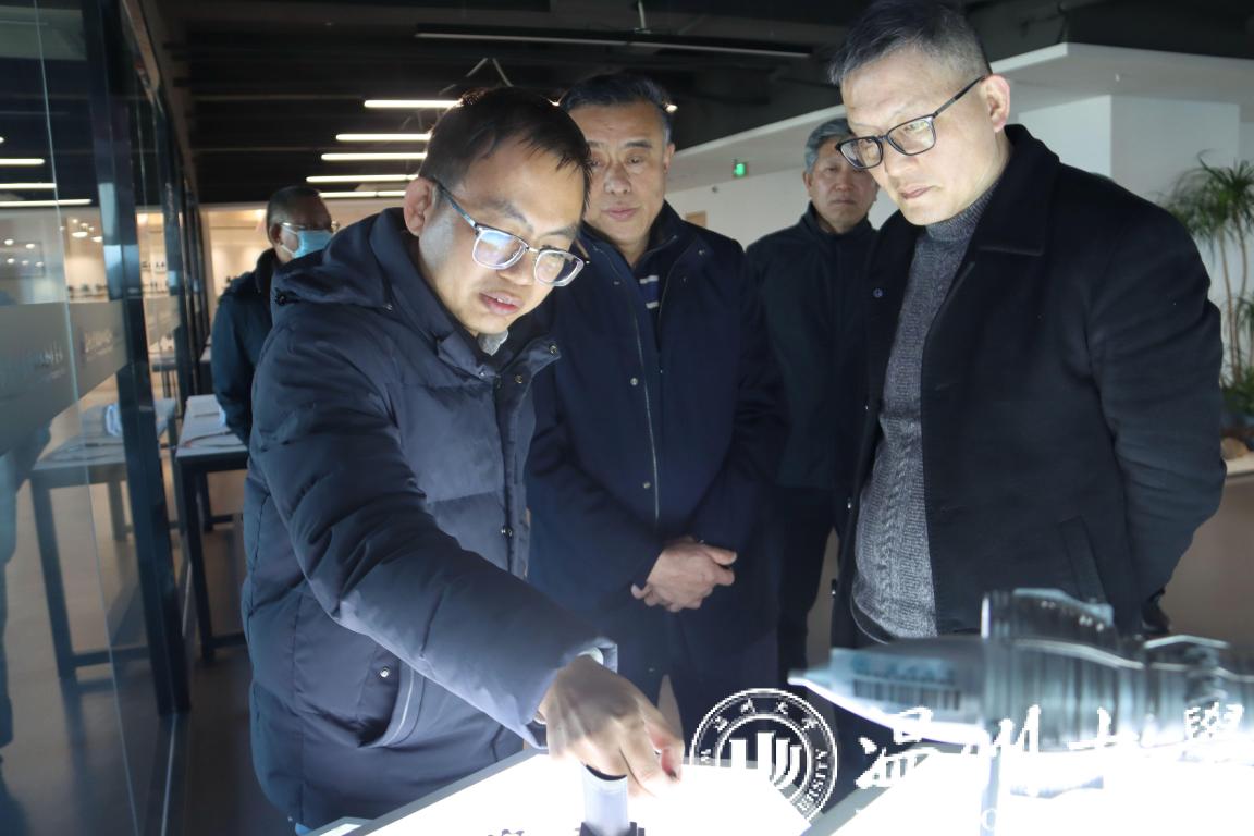 薛伟教授代表基地热烈欢迎朱勇敏副书记一行莅临,并且带领他们参观基地实验室,同时展示了基地在平台建设、关键技术研发及产业化等方面的成果。